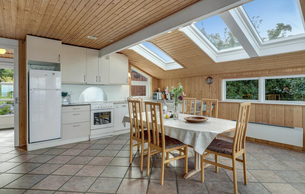 Her kan I læne jer tilbage og slappe af i den store sofa i opholdsstuen, hvor I kan tænde op i brændeovnen for at skabe ekstra hygge. Spisestuen ligger i forlængelse af køkkenet, hvor den åbne indretning lader jer nyde hinandens selskab, mens der laves mad. På de lune sommeraftener kan I samle familien til hyggelige middage på terrassen, hvor I har havemøbler og grill til jeres rådighed.