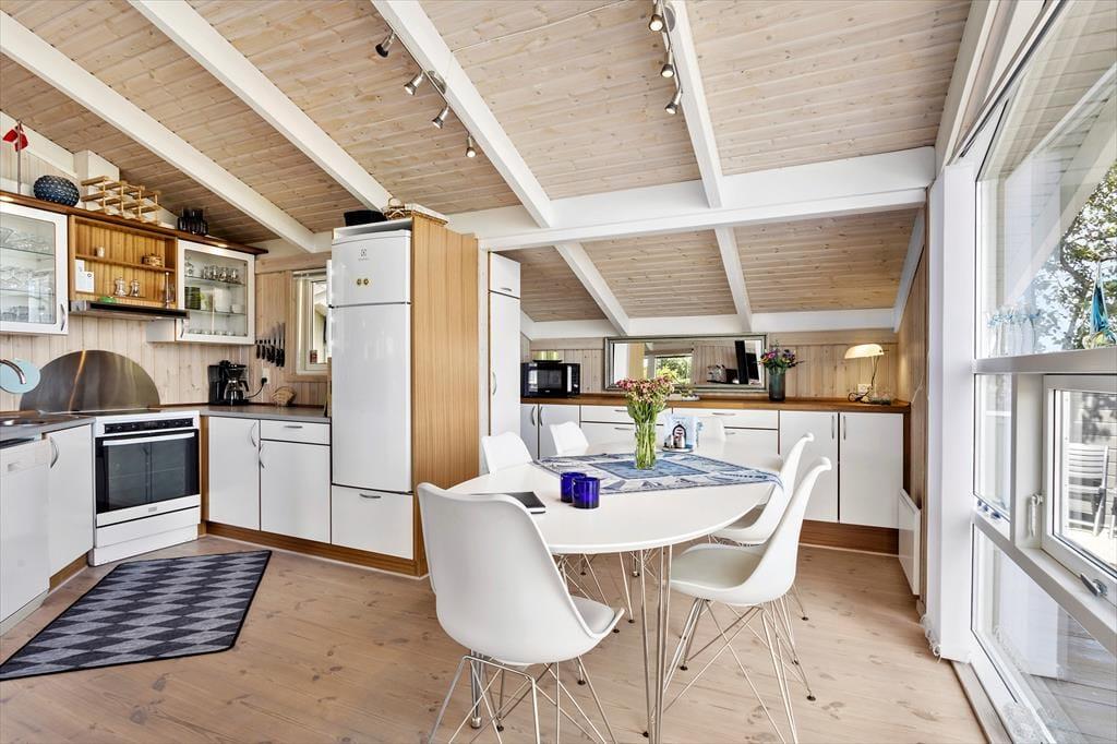 Sommerhuset emmer af varme og hygge takket være den lyse og hjemlige indretning, der skaber en afslappet atmosfære fra første øjeblik, du træder ind ad døren. Med de store vinduespartier inviteres udsigten til Kattegat helt ind i opholdsrummet, hvor du kan slå dig ned med en kop kaffe og lade blikket vandre ud over vandet. Huset er fyldt med små, personlige detaljer og komfortable møbler, der indbyder til nærvær og afslapning. Tænd op i brændeovnen på en kølig aften, eller saml familien til en hyggelig middag i den lyse spisestue. Efter en dag fyldt med oplevelser kan du trække dig tilbage til et af de hyggelige værelser og lade roen sænke sig.