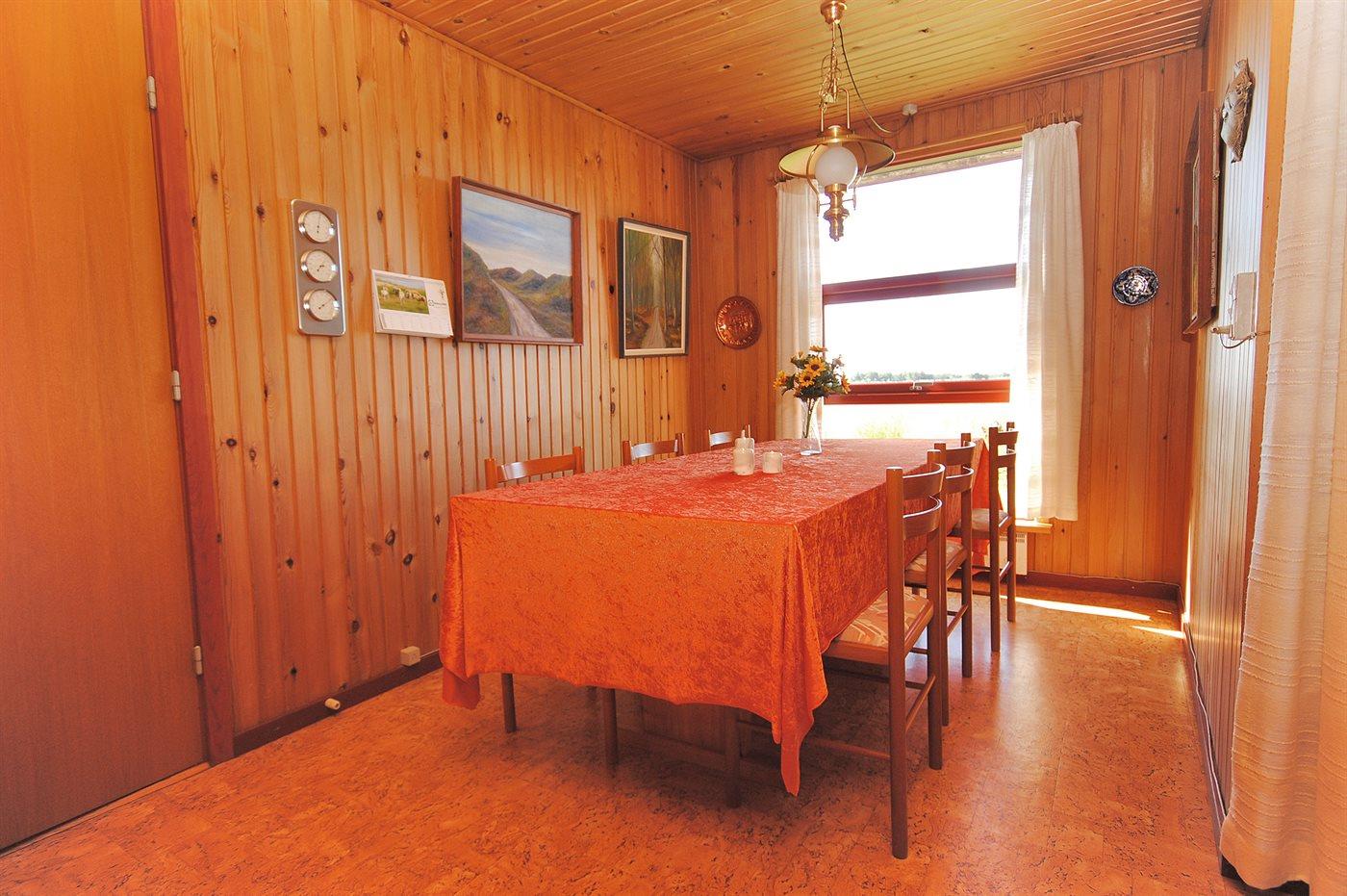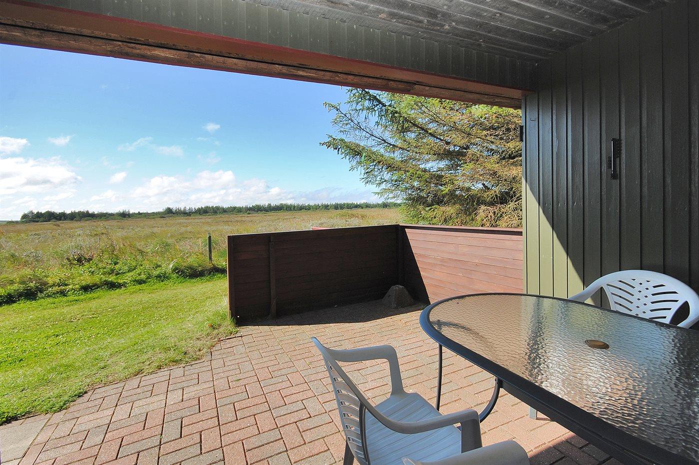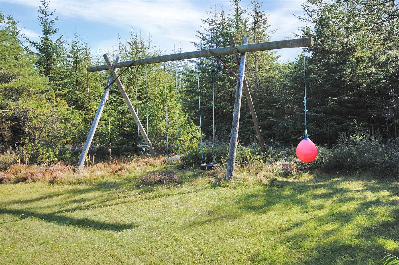 Ferieboligen er beliggende på en 6000 m² stor naturgrund. Der er 900 m til havet. Nærmeste forretning er beliggende i en afstand af 5000 m. Desuden er der 10 m² overdækket terrasse. Der er redskabsrum. Gynge. Parkering ved ferieboligen.