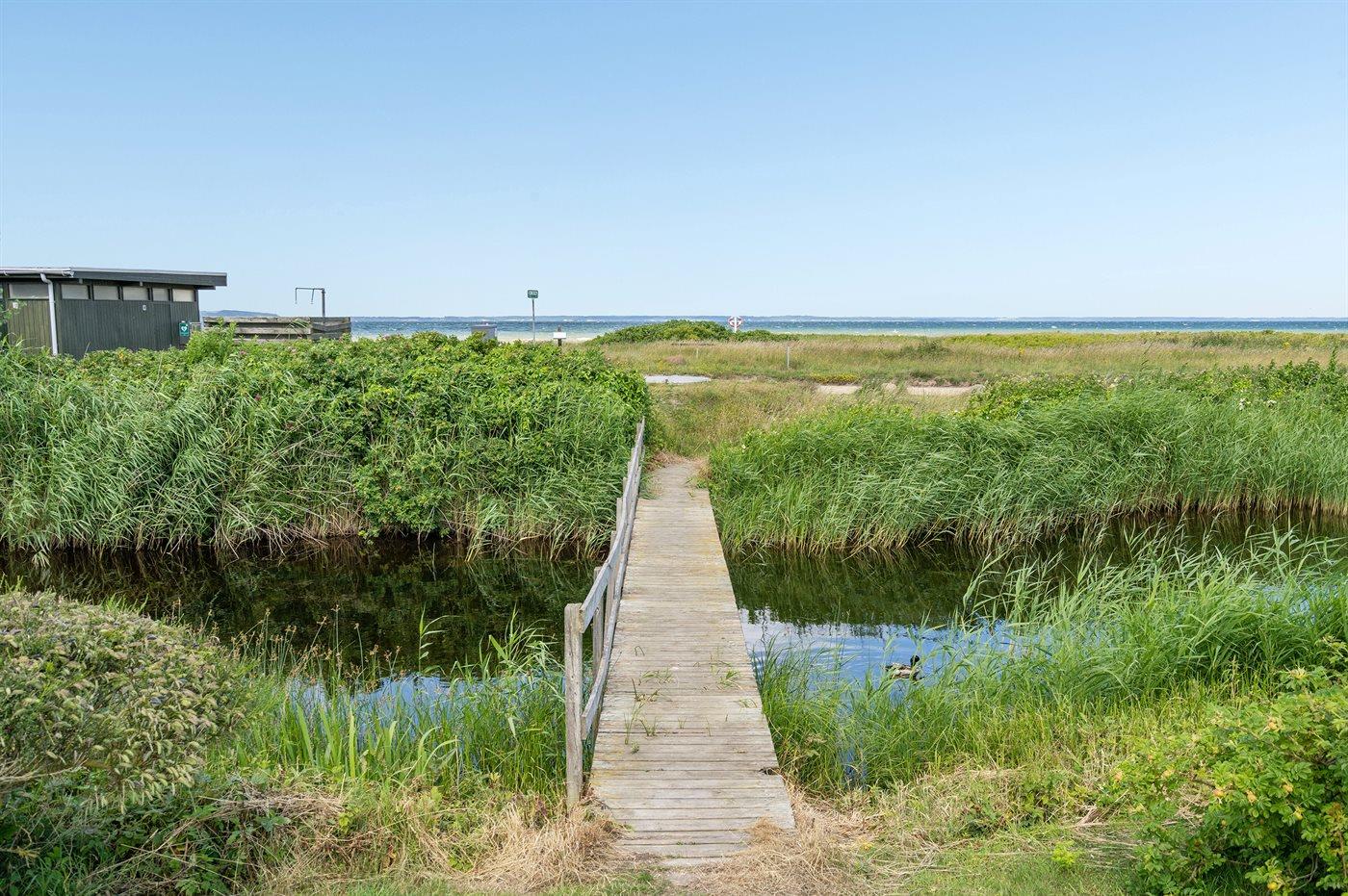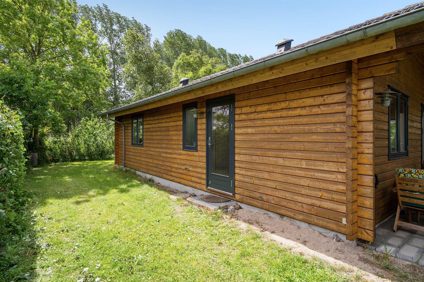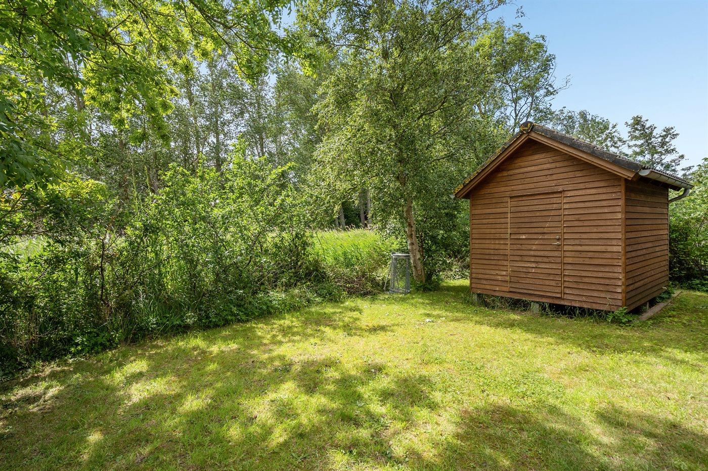 Ferieboligen er beliggende på en 506 m² stor havegrund. Der er 120 m til havet. Nærmeste forretning er beliggende i en afstand af 2800 m. Til ferieboligen hører åbent terrasseareal. Desuden er der overdækket terrasse. Der er redskabsrum. Der ligger en legeplads i en afstand af 450 m. Grill til rådighed. Parkering ved ferieboligen.