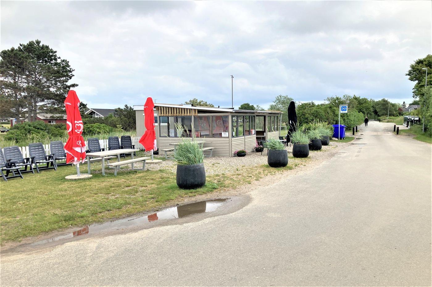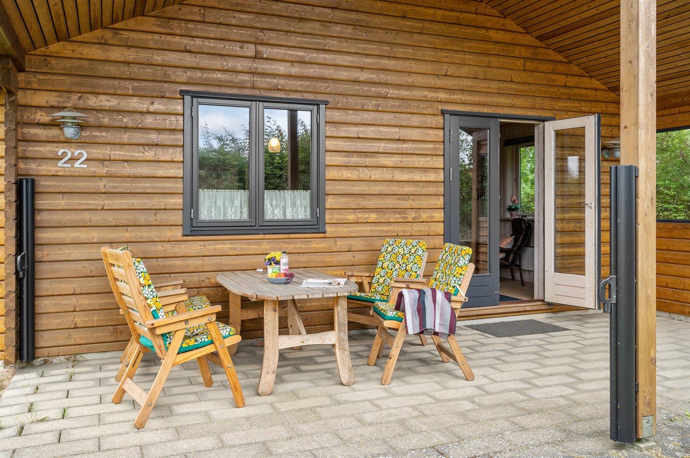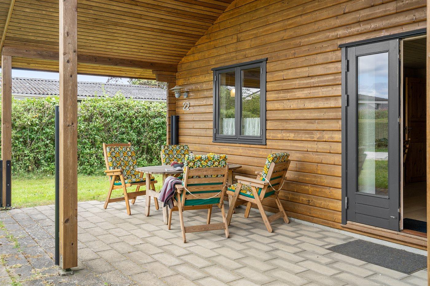 Ferieboligen er beliggende på en 506 m² stor havegrund. Der er 120 m til havet. Nærmeste forretning er beliggende i en afstand af 2800 m. Til ferieboligen hører åbent terrasseareal. Desuden er der overdækket terrasse. Der er redskabsrum. Der ligger en legeplads i en afstand af 450 m. Grill til rådighed. Parkering ved ferieboligen.