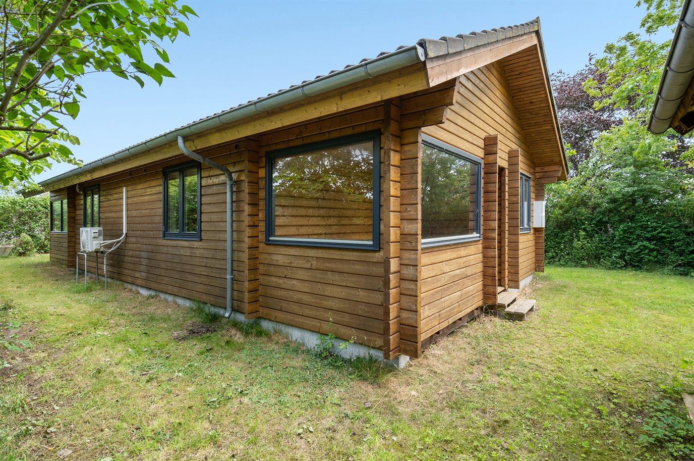 Huset er helårsisoleret og udstyret med både varmepumpe og gulvvarme, så det er også velegnet i den kolde tid.