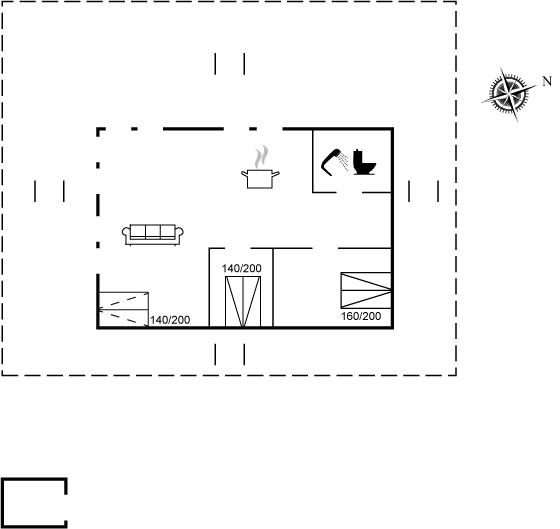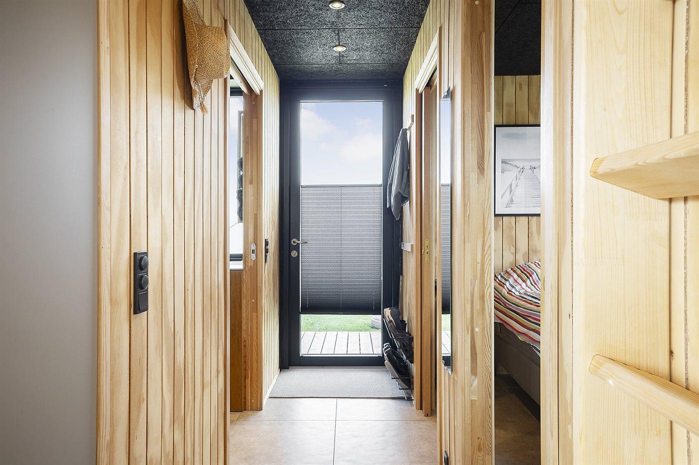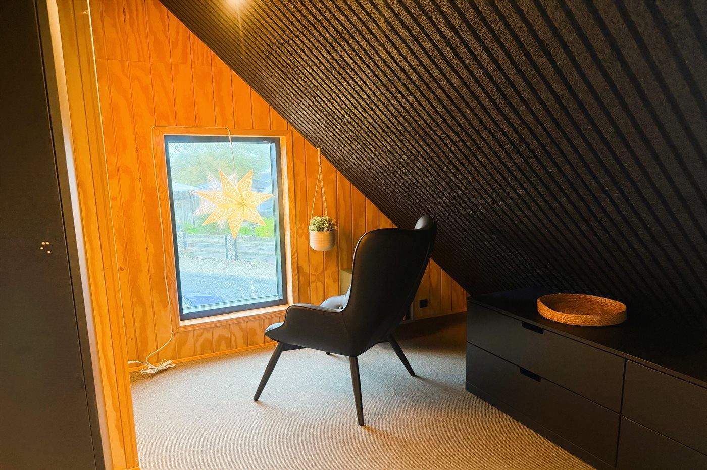 Der er stor hems i huset, hvor de to af sovepladserne befinder sig. Her er også et lille stueareal, hvor man kan sidde og se ud over vandet. I stuen er opsat sovesofa, så der er reelt 8 sovepladser at vælge imellem. Huset er dog ikke så stort, så der må maksimalt bo 4 personer + et lille barn i barneseng i huset.