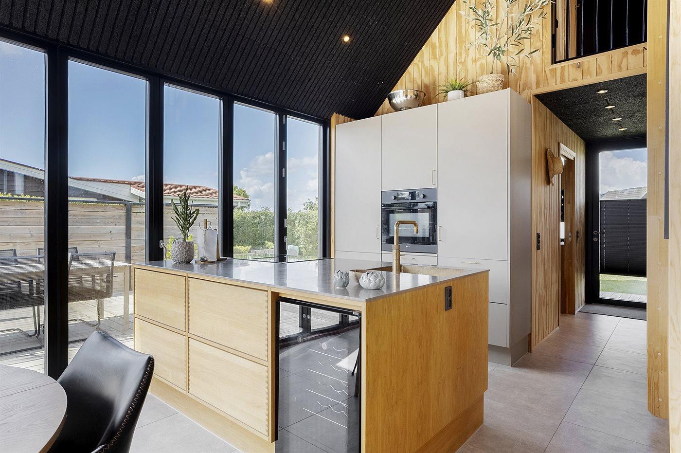 Køkkenet er veludstyret med alt, hvad der er brug for, herunder bl.a. Quooker (instant kogende vand i vandhanen) og vinkøleskab.