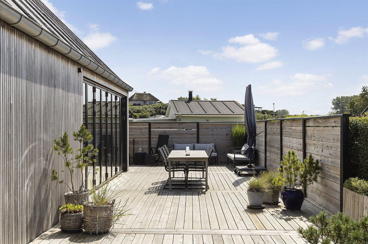 Flot og lækkert sommerhus bygget i 2022 med det skønneste terrasseareal.