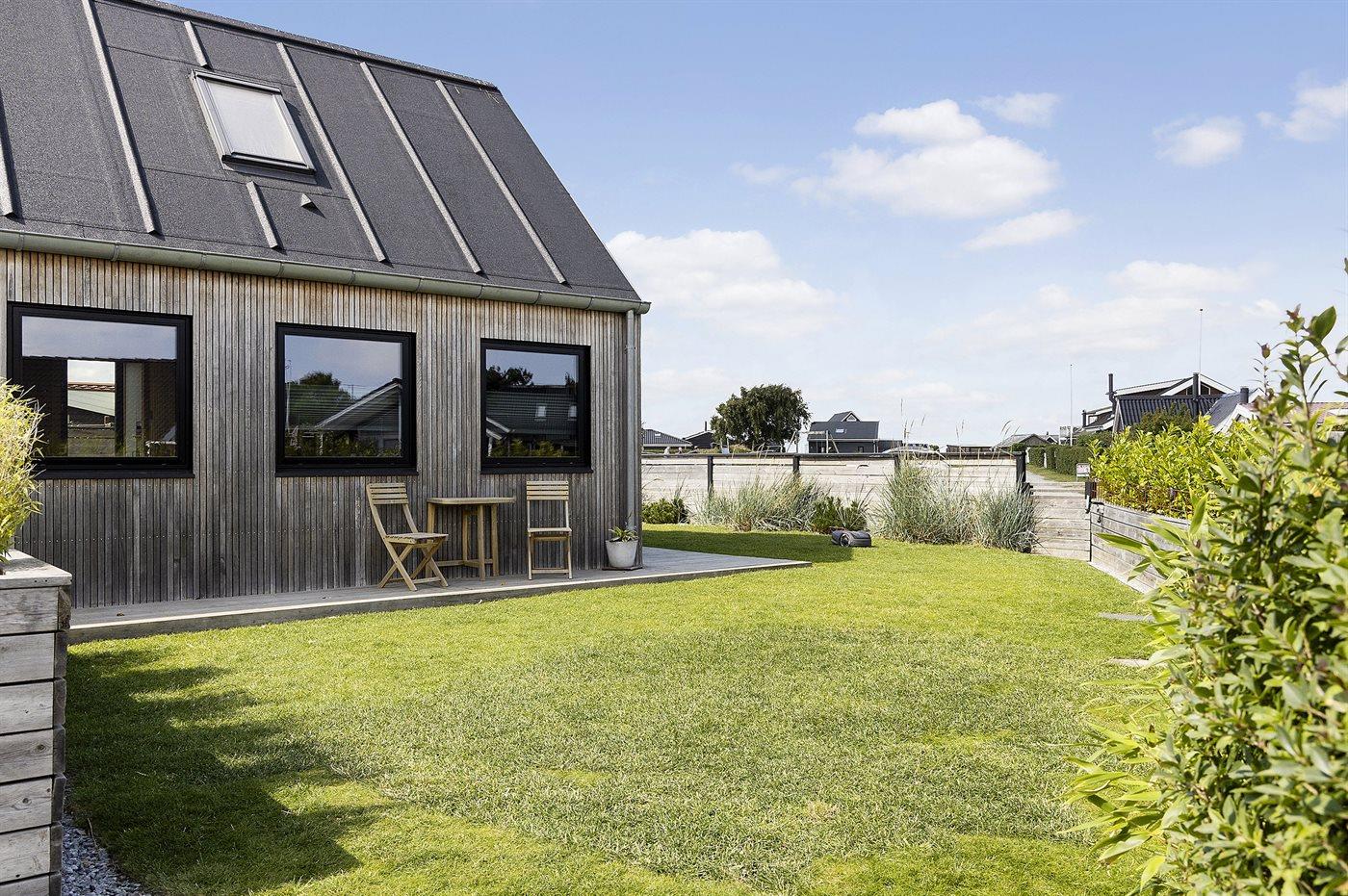 Ferieboligen er beliggende på en 314 m² stor havegrund. Der er 125 m til havet. Nærmeste forretning er beliggende i en afstand af 3000 m. Til ferieboligen hører åbent terrasseareal. Der ligger en legeplads i en afstand af 50 m. Grill til rådighed. Der er installeret stik til opladning af elbil. Type 2 stik. Med 11 kW ladeeffekt. Parkering ved ferieboligen.