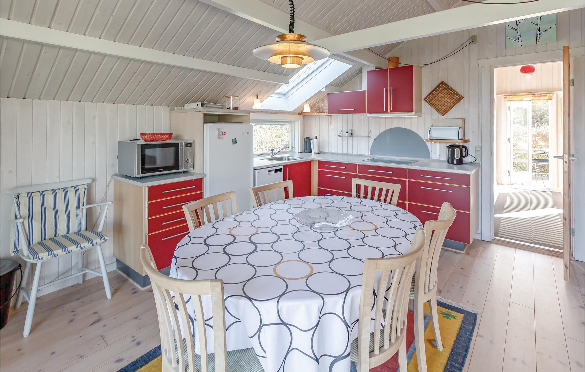 Et lyst og venligt indrettet feriehus med en skøn beliggenhed kun 100 m fra stranden. Huset indeholder tre fine soveværelser, et badeværelse samt et godt køkken/alrum med brændeovn, spiseplads og sofaarrangement. På den dejlige terrasse kan I sidde og nyde ferien, mens I griller lækre feriemåltider og nyder et køligt glas vin.