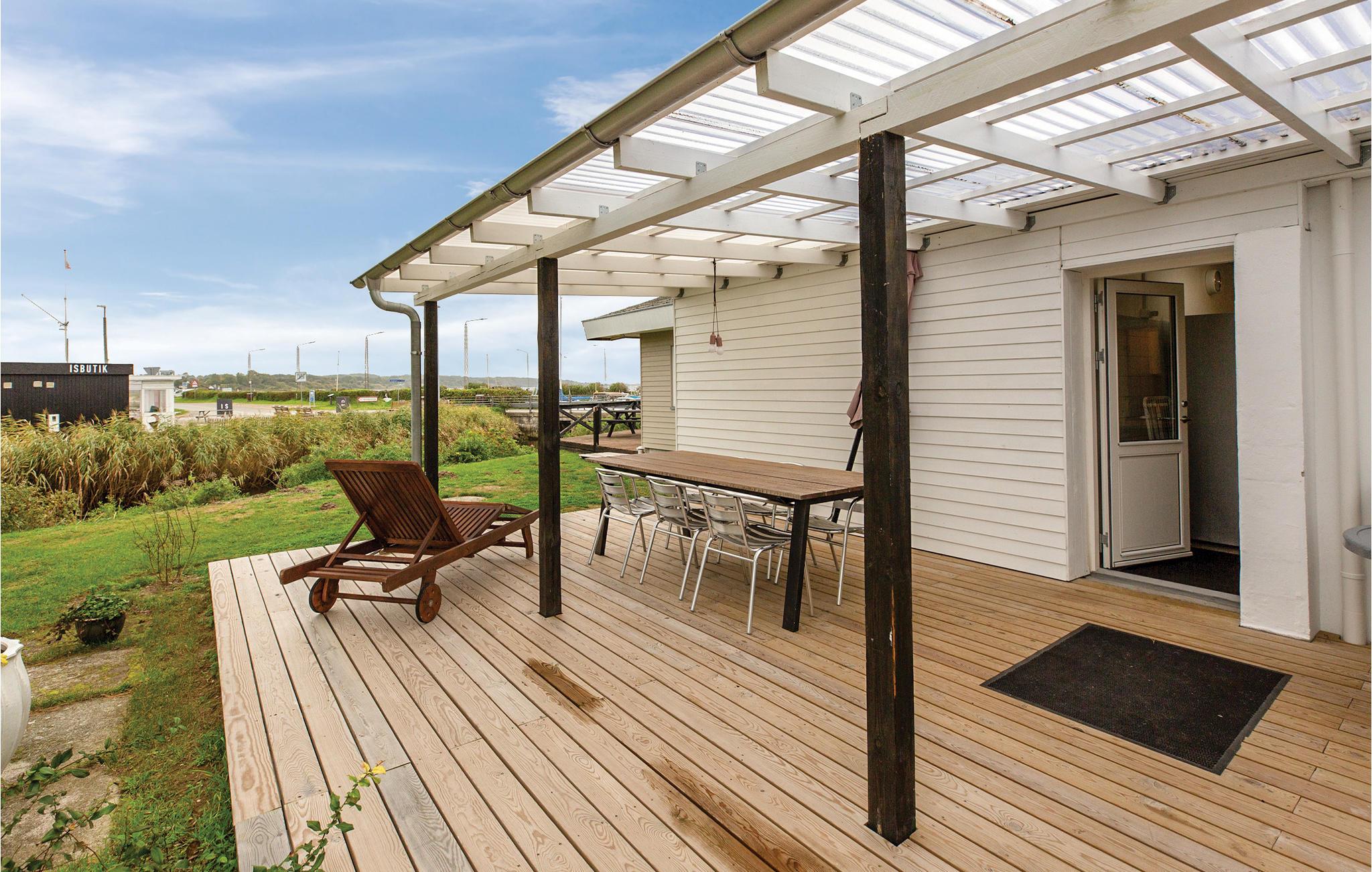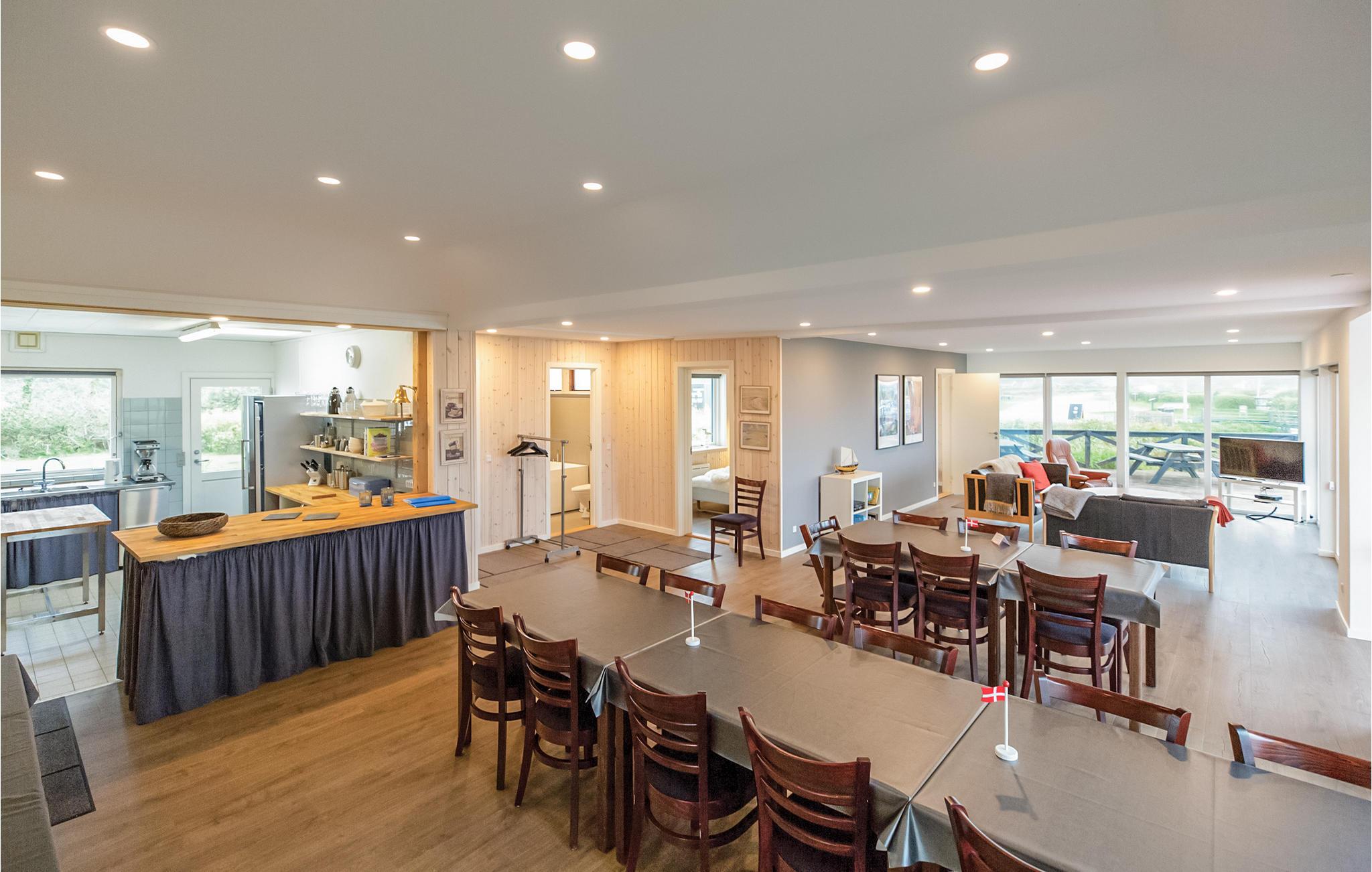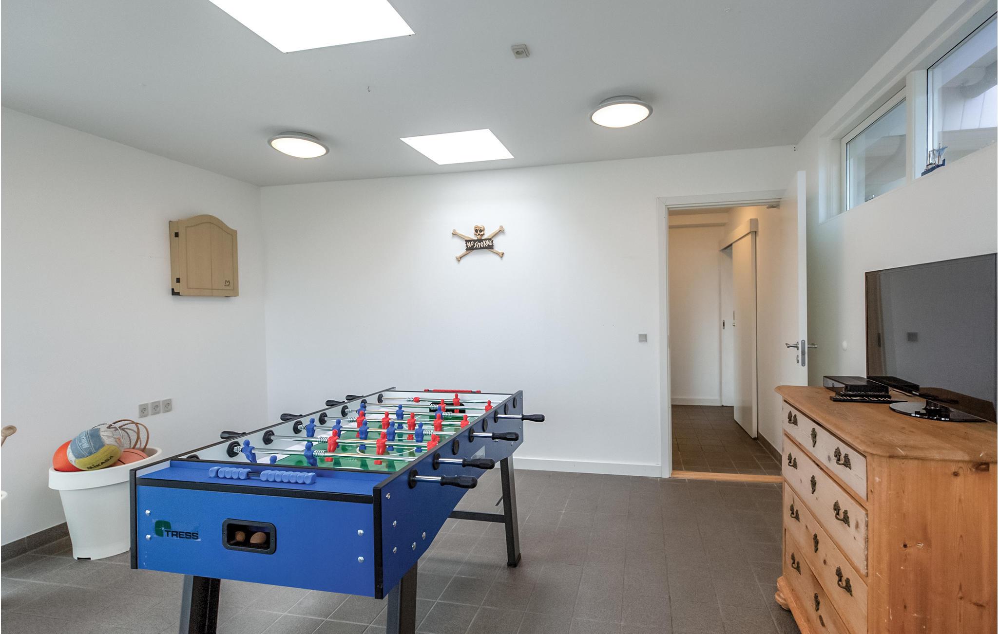 Huset indeholder også et aktivitets- og spillerum, hvor I kan gå ud, hvis I har brug for at bruge noget krudt ved bordfodboldbordet - også herfra er der fuld udsigt ud over vandet. Huset har flere gode terrasser, som er placeret således, at I både kan søge i skygge og sidde i sol, og naturligvis komme endnu tættere på havet og åen, der løber langs huset. Selvom huset er udstyret med flere tv'er, er det bedste billede I kan nyde fra sofaen, udsigten gennem de store vinduespartier, der går fra gulv til loft.