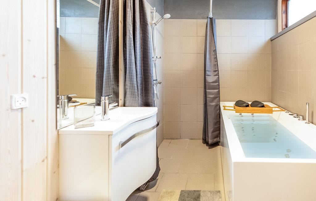 I huset er der fire gode soveværelser samt to badeværelser med spabad i det ene. Også her er der kræset for detaljerne, og det er et lækkert sted at være. Køkkenet er et kapitel for sig, da det er udstyret efter alle kunstens regler, så lige meget hvilken gastronomisk udfoldelse I ønsker, vil I finde udstyret i orden med bl.a. et stort gas industrikomfur, to ovne og et stort køleskab og fryser. Køkkenet er i åben forbindelse med alrummet, og skaber gode muligheder for at være tilstede, selv om I tryller i køkkenet.