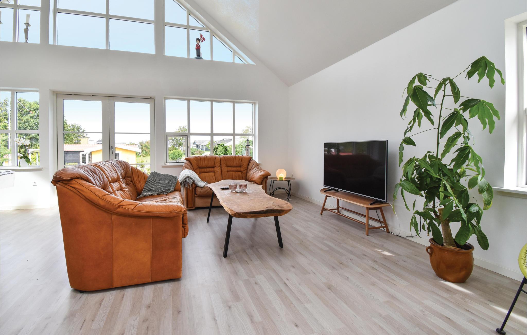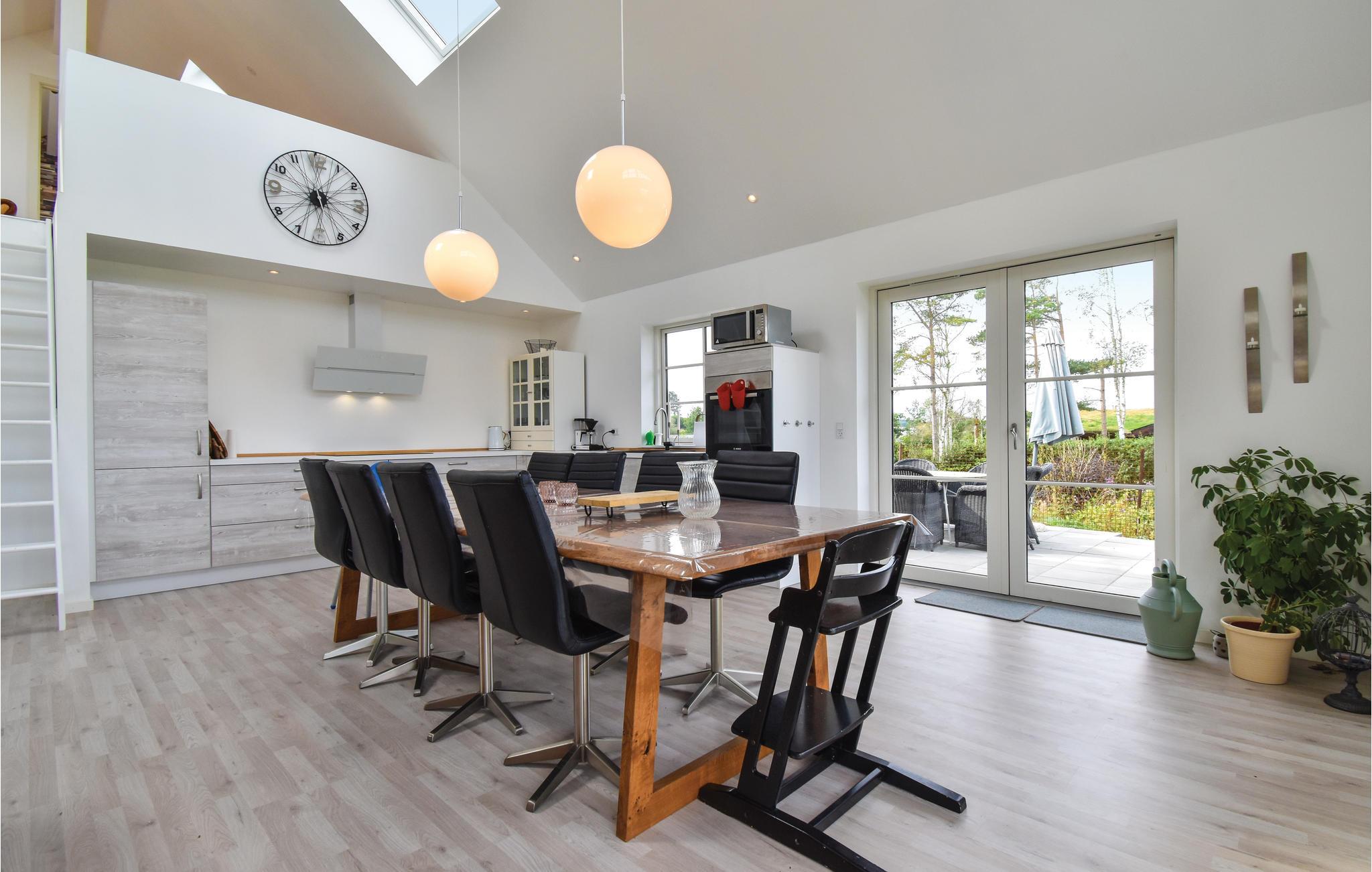 I dette sommerhus lukkes lyset ind gennem store facadens store vinduesflader og selvom I sidder i sofaen, er det alligevel i tæt kontakt med himlen og naturen. Dette fine hus er på lidt over 100 m² med plads til seks gæster og to husdyr. Der er tre soveværelser og et badeværelse, fordelt på to etager. Store loftsvinduer sørger også for lyset på første sal og skulle der komme en byge, så er det hyggeligt når regndråberne spiller en melodi på glasset.