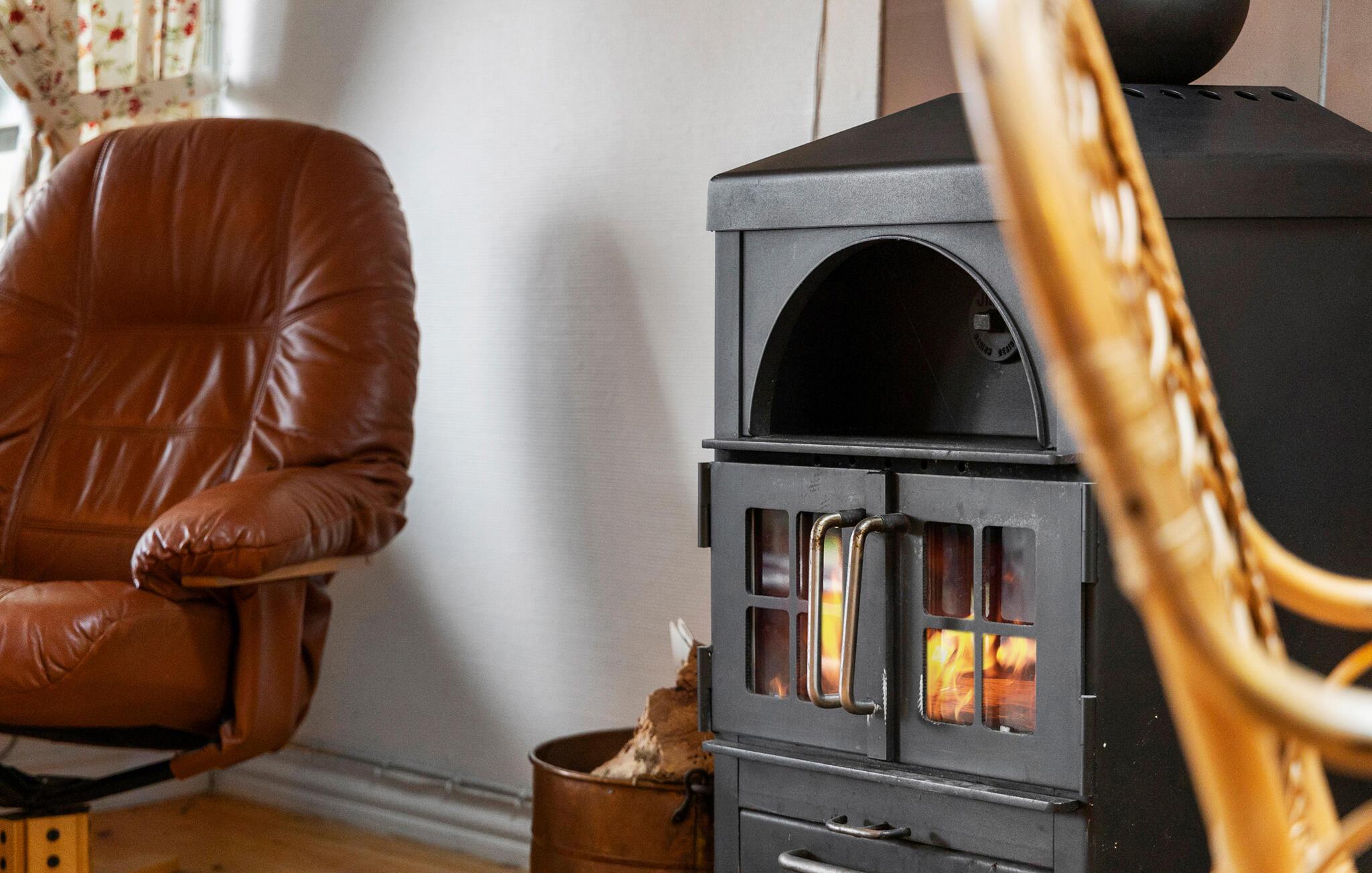 Hyggeligt feriehus ved Varbjerg Strand med åben terrasse og brændeovn, perfekt til en afslappende familieferie.