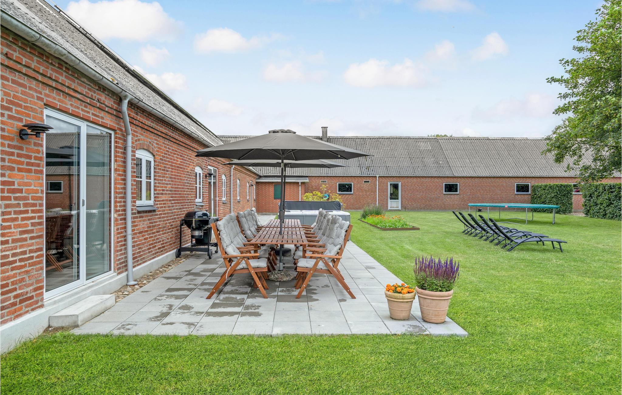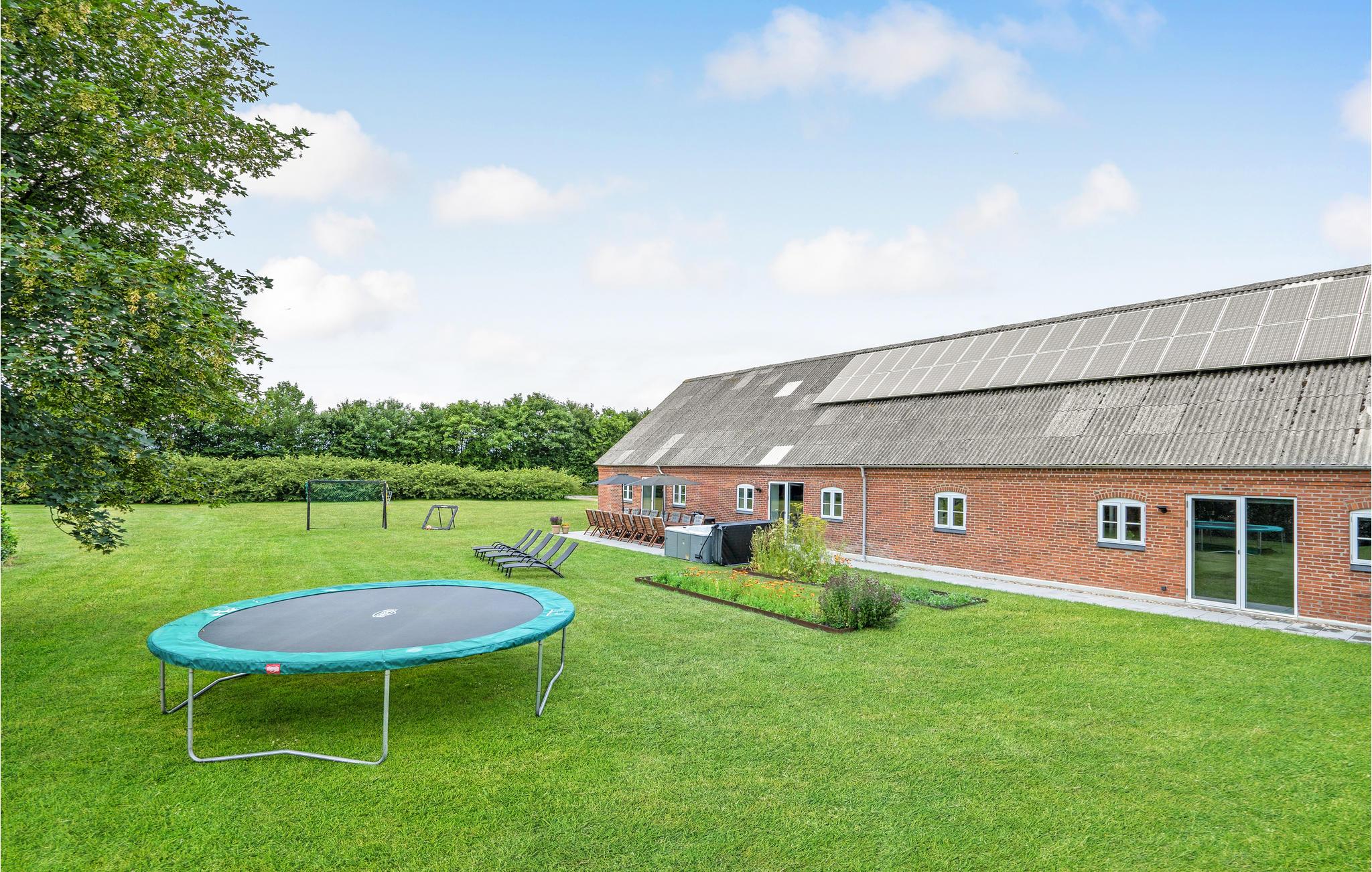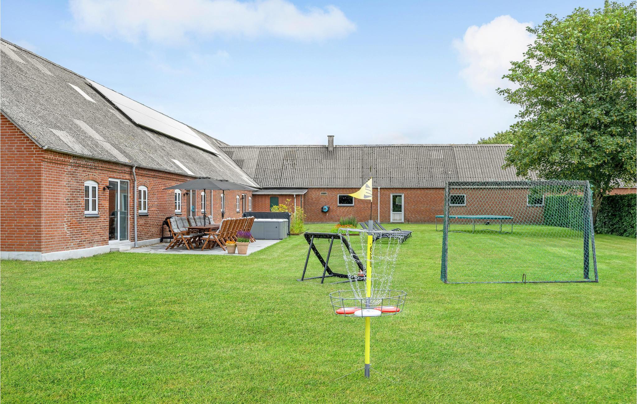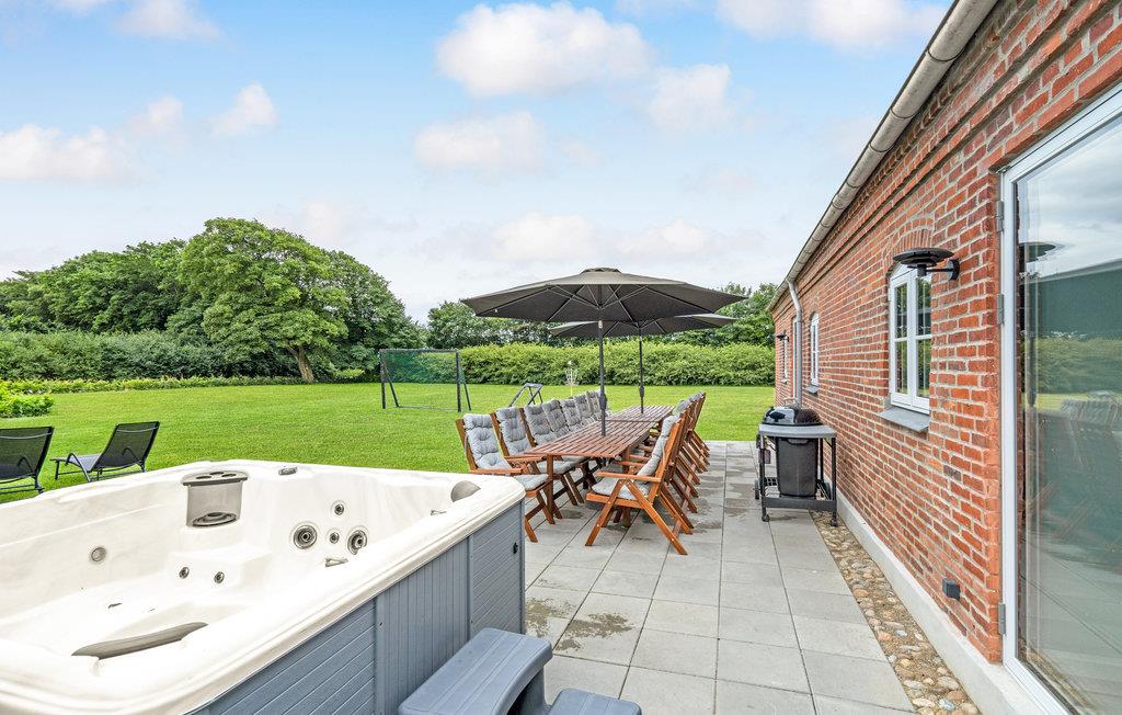 Sæt jer til rette i boblebadet på terrassen eller nyd en lækker middag med retter fra grillen. Græsplænen giver masser af plads til at lege og være aktiv.