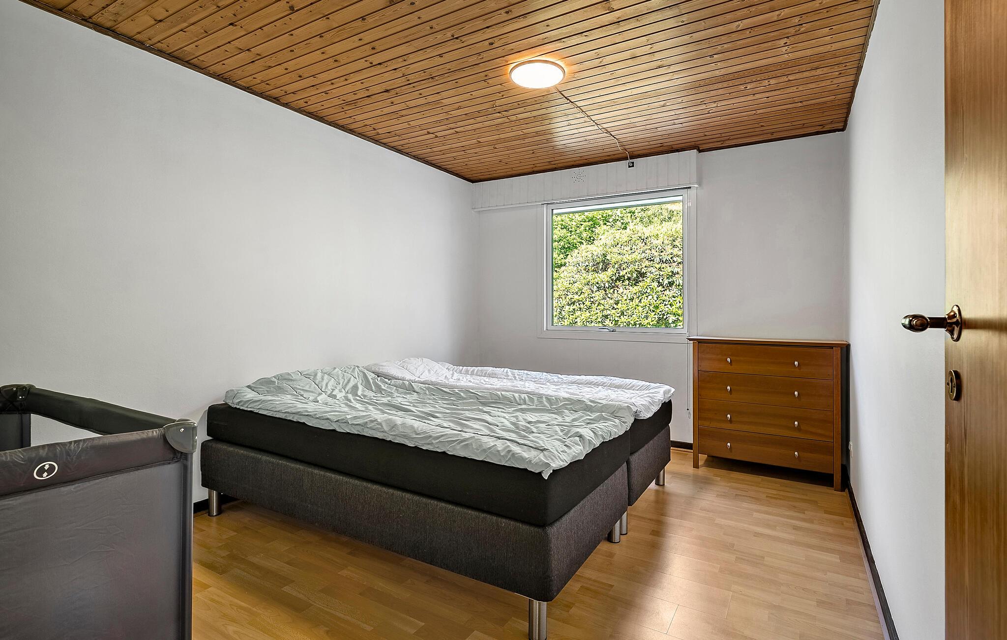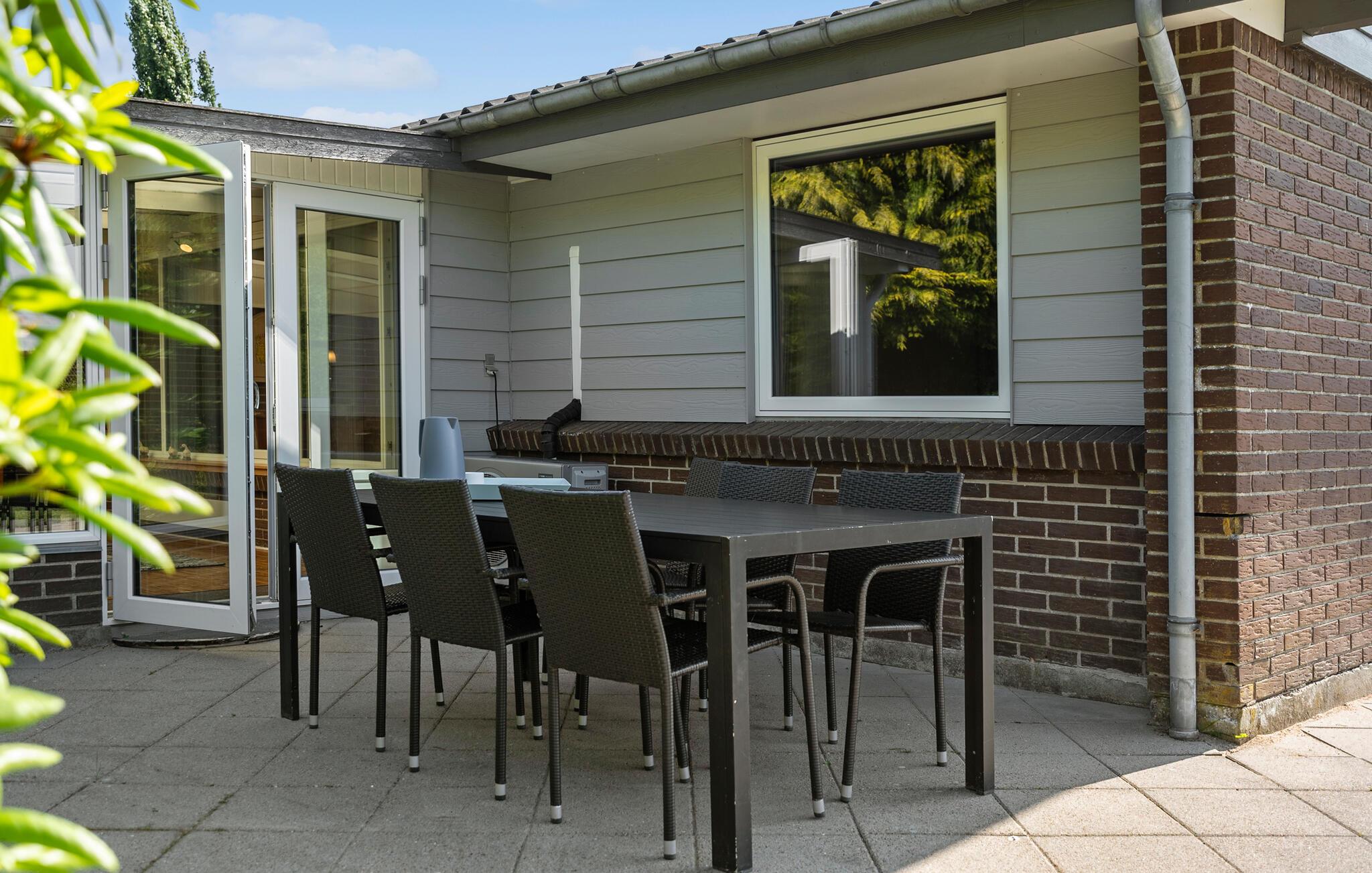 Hold en afslappende ferie i dette komfortable hus, ideelt for familier. Den rolige beliggenhed og de gennemtænkte indretningsløsninger giver de bedste betingelser for en afslappende ferie. Den rummelige opholdsstue har en behagelig sofa, TV og masser af naturskønt lys gennem de store vinduer. Brug spiseområdet til fælles måltider eller hyggelige spilleaftener. Tilbered lækre retter i køkkenet med rigelig arbejdsplads, moderne apparater, et komfur og en hyggelig morgenmadskrog. Et andet højdepunkt er den lyse udestue med bordfodboldbord, der sørger for underholdning, uanset om det er solrigt eller regnfuldt.