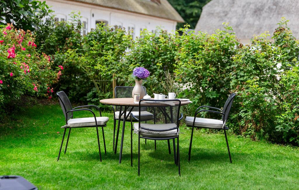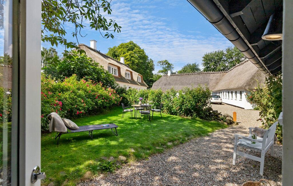 Gå udenfor i den beskyttede have, omkranset af buske og planter. Slap af på liggestolen, sæt jer ved havebordet på græsplænen, eller nyd en kop kaffe på bænken foran huset. Det velholdte udendørsområde er et dejligt sted til solrige timer med en bog eller et glas vin.