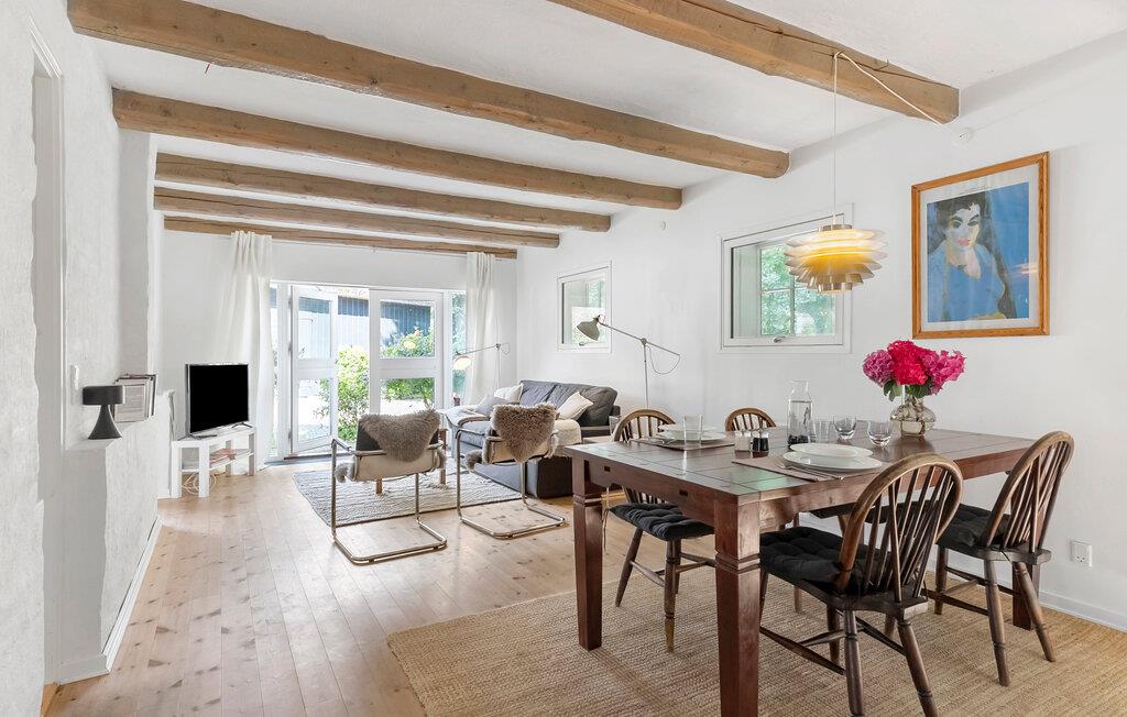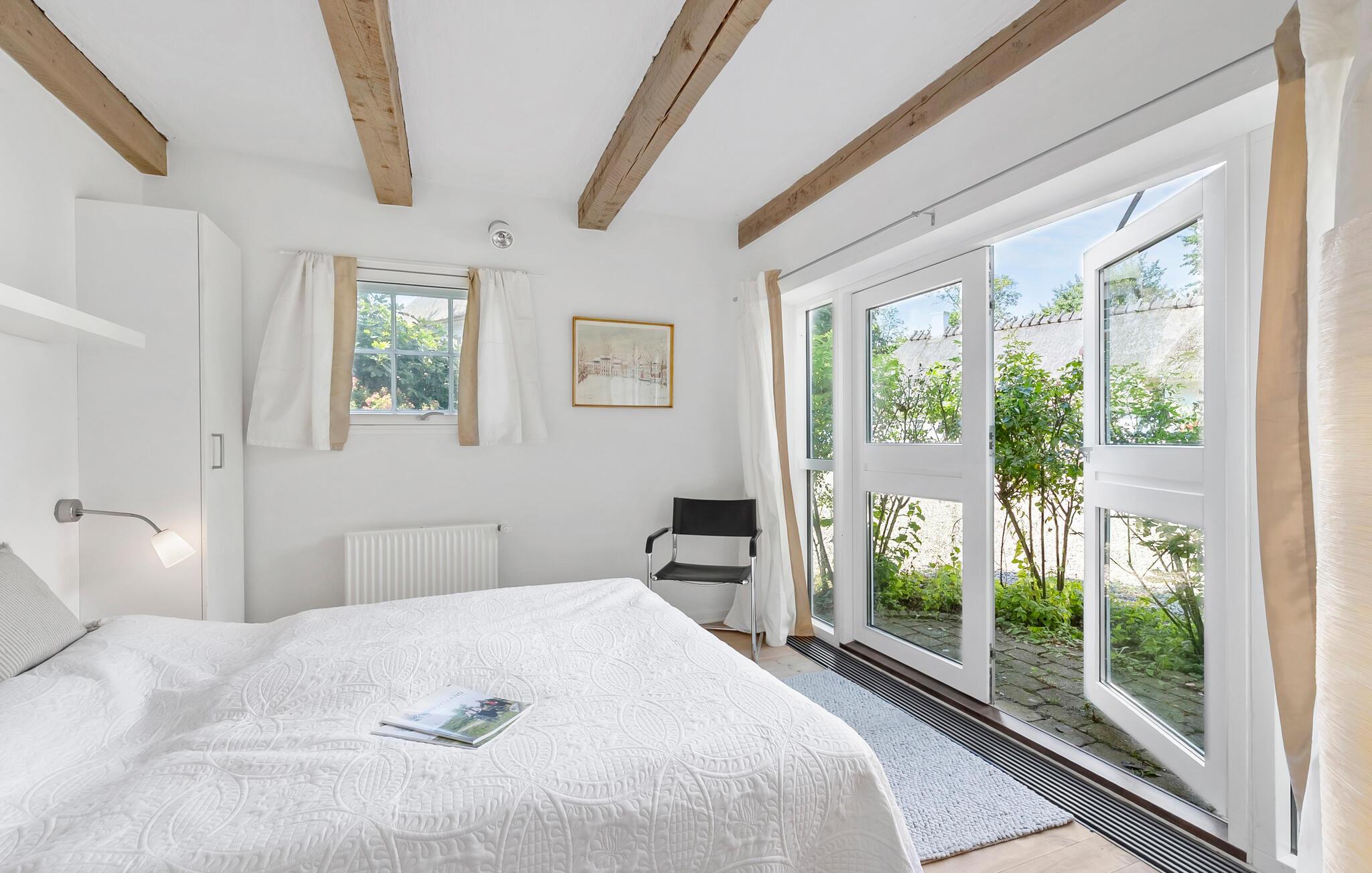 Nyd roen i dette charmerende hus, beliggende mellem gamle træer og velholdte haver. Her i det maleriske landskab ved Aabenraa Fjord vil I tilbringe en afslappende ferie i naturlige omgivelser. Hyg jer sammen i den lyse opholdsstue. Nyd den harmoniske kombination af traditionelle bjælker, lyse vægge og stilfulde møbler. Slap af i den komfortable sofa, eller åbn terrassedørene, og lad den friske luft strømme ind. Lav mad i det hyggelige køkken, og nyd jeres måltider ved spisebordet, hvor der er god plads til alle. Afslut dagen i ro og fred ved pejsen.