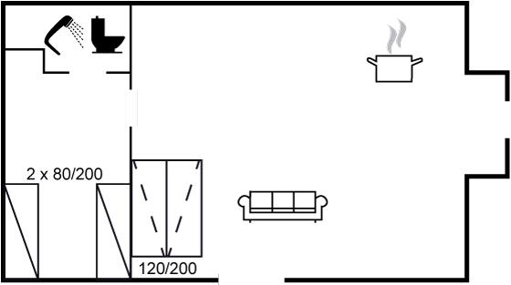 Der er i alt 1 soveværelse. Sovepladserne fordeler sig på: 2 sovepladser i enkeltsenge. 2 sovepladser i sovesofa (dobbelt).