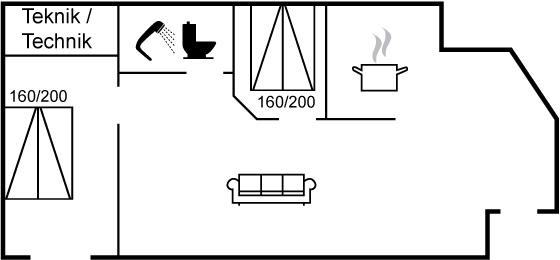 Der er i alt 2 soveværelser. Sovepladserne fordeler sig på: 4 sovepladser i dobbeltsenge.