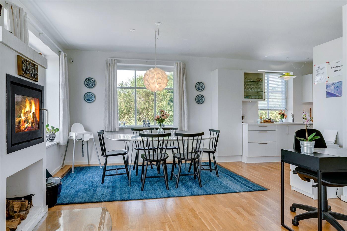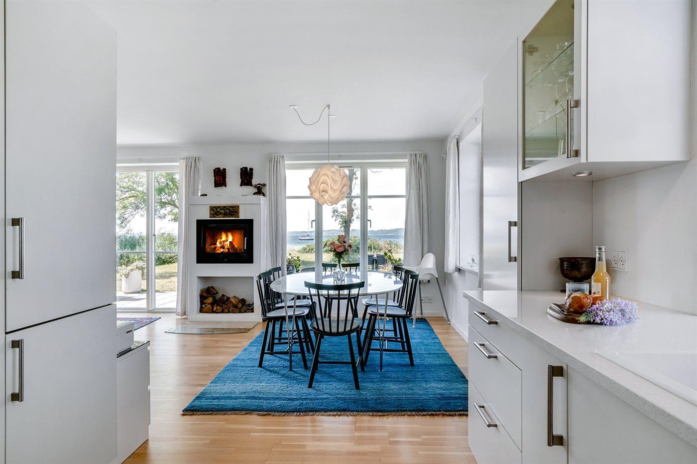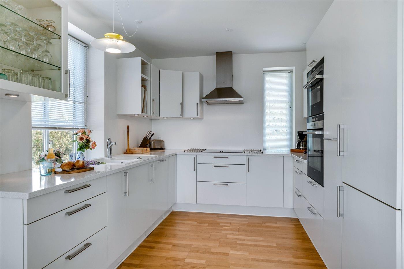 Køkkenet er udstyret med 1 køleskab. Der er 4 induktionskogeplader, varmluftovn, mikrobølgeovn samt opvaskemaskine.