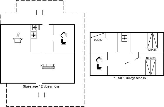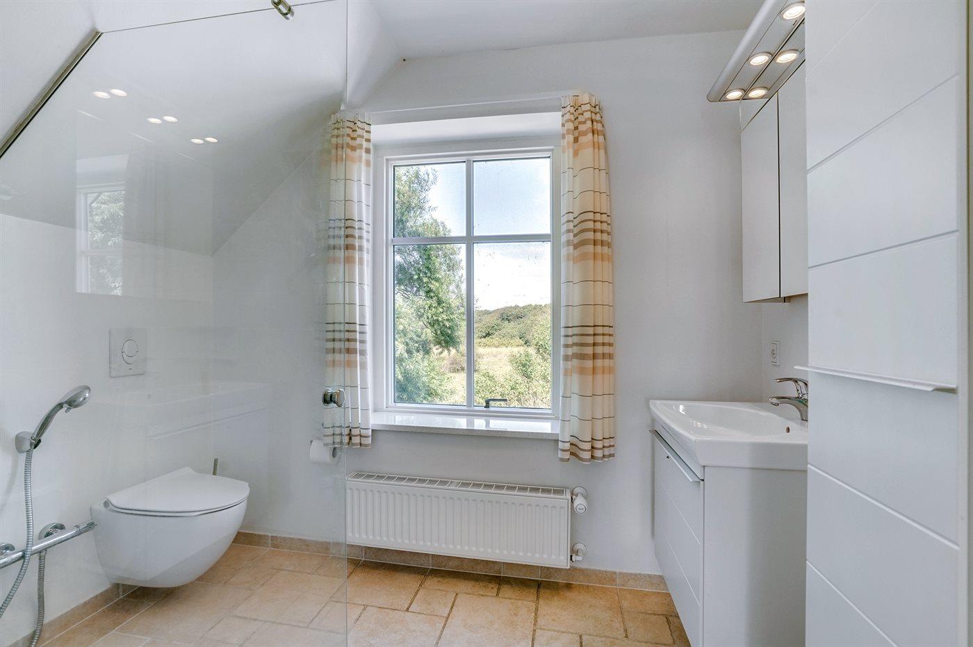 Der er 2 badeværelser med bruseniche og 2 toiletter. Der er gulvvarme på 2 badeværelser.
