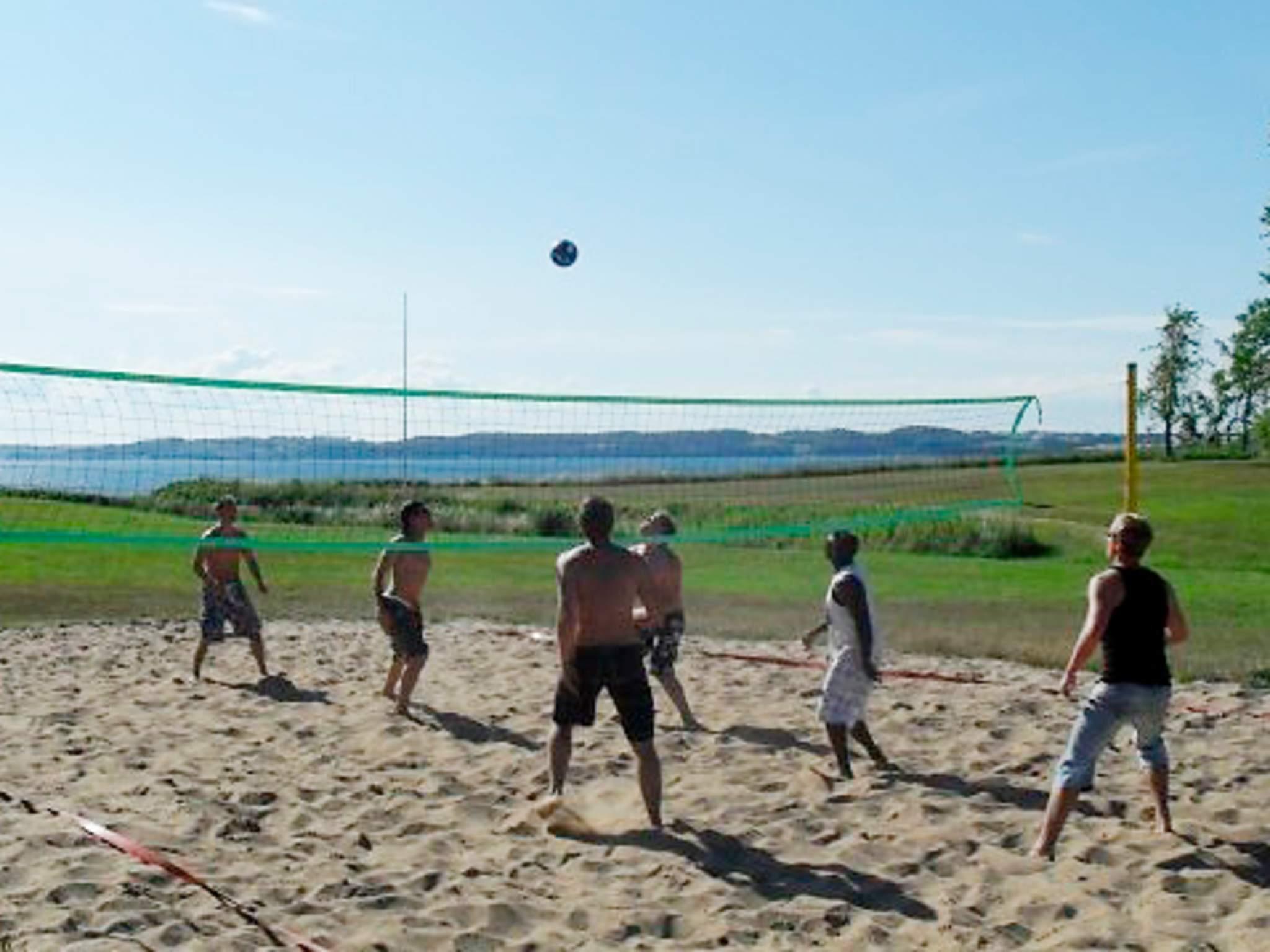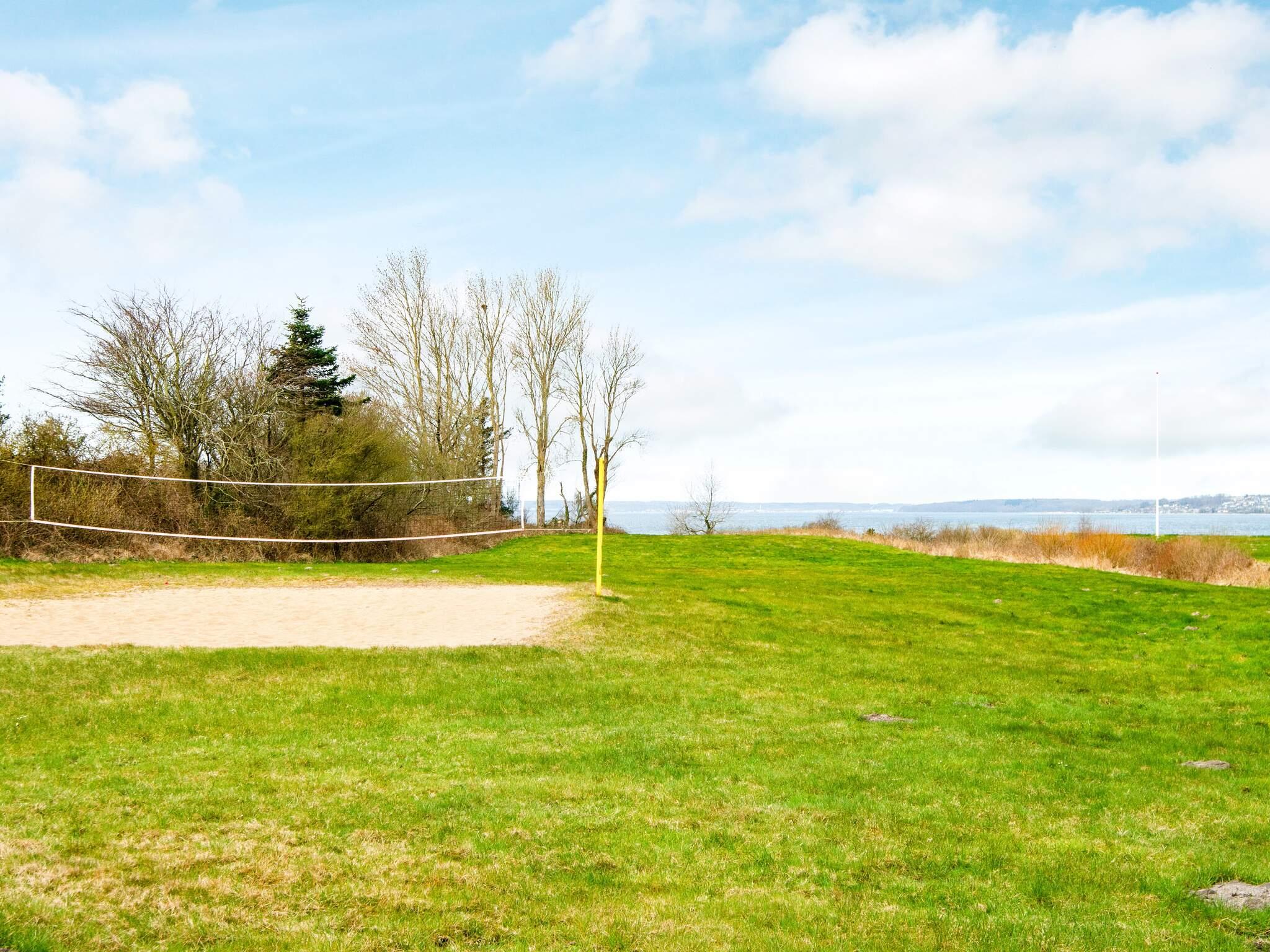 Der er på grunden anlagt beach-volleybane med internationale mål (8x16 meter). Grunden er en 33.000 m² stor naturgrund i den skønneste natur på Varnæshoved, hvor I vil bo helt ugenert for enden af lukket vej uden naboer. Havegrunden går direkte ned til Als Fjord og selve huset ligger ca. 150 m fra vandet. På naturgrunden får græs og blomster lov til at vokse vildt, da der er fokus på bæredygtighed. Der er slået små stier rundt på grunden, så man kan gå tur og nyde biodiversiteten og i øvrigt må man gerne plukke af naturens gaver - frugt og bær, som selvfølgelig ikke er sprøjtet. Dette hus har simpelthen en perfekt og unik beliggenhed og en storslået udsigt som må opleves.