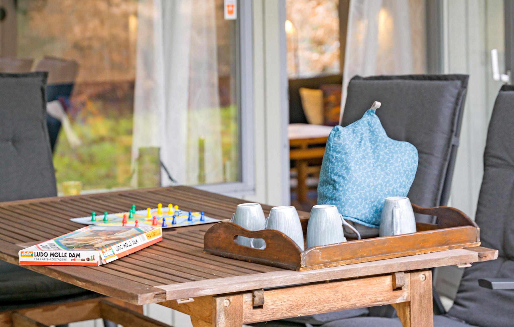 Om aftenen kan I gøre jer det behageligt med et sjovt brætspil eller en god film i stuen eller på den overdækkede terrasse. Måske I kan være heldige at se nogle egern løbe rundt i træerne?