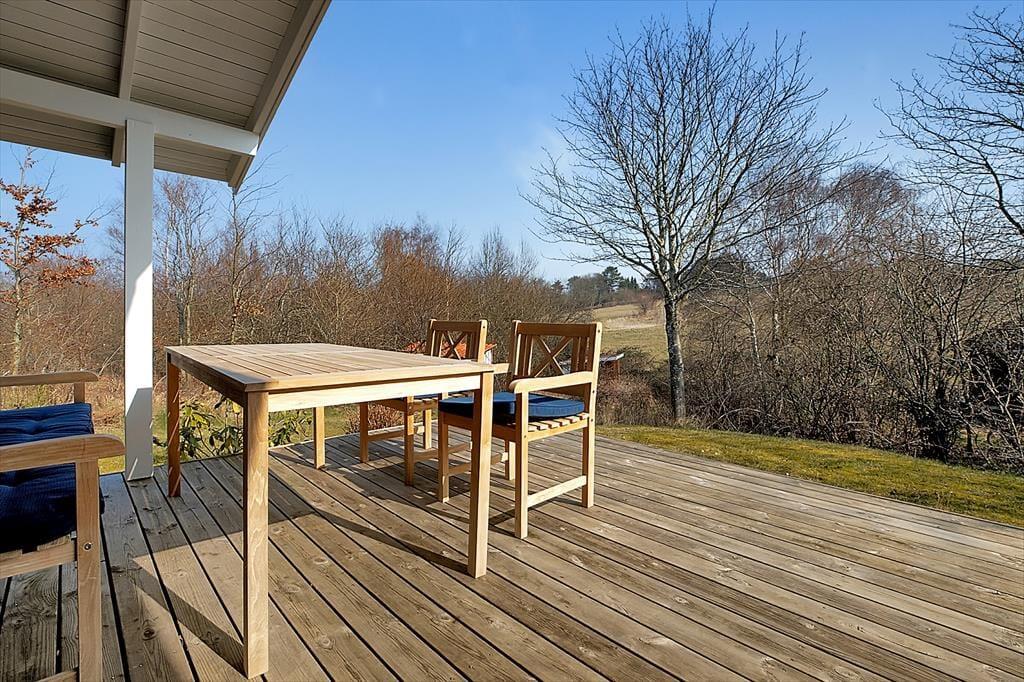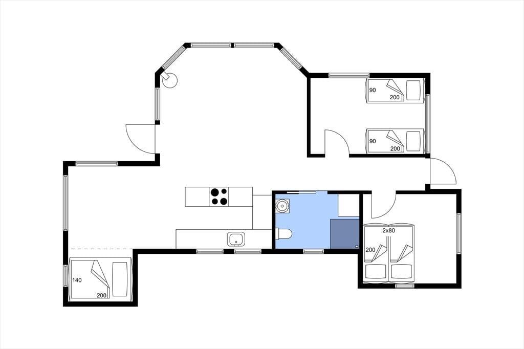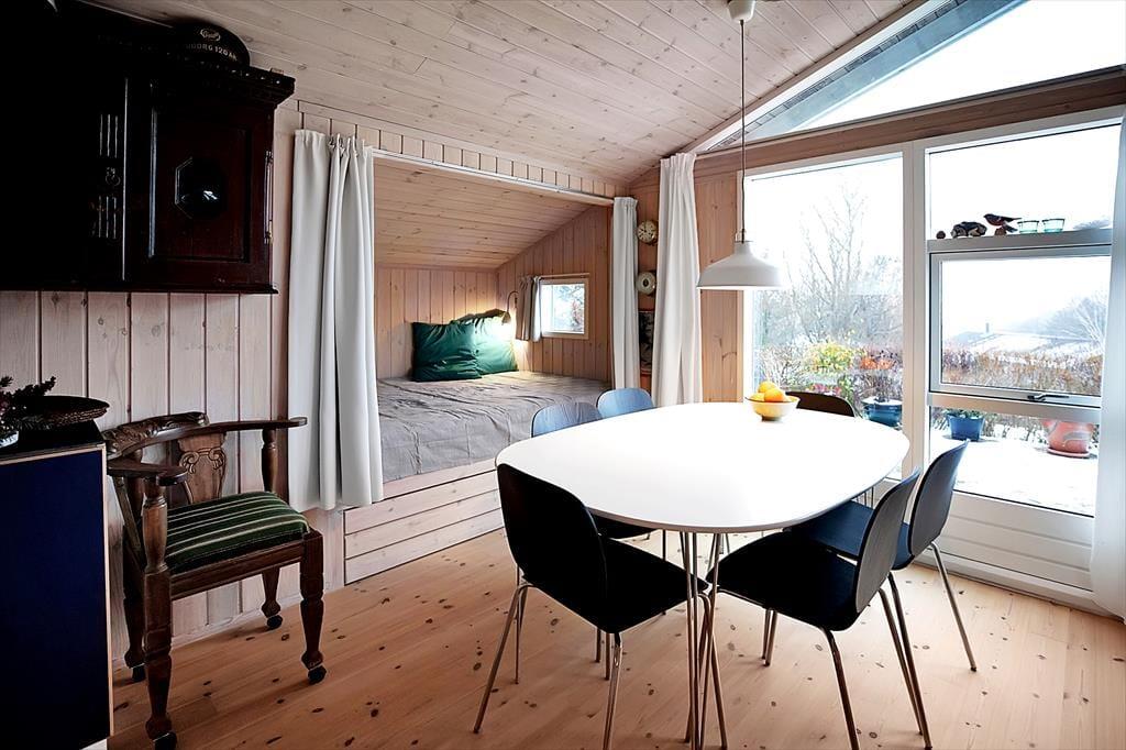 Huset er indrettet med åbent køkken i forbindelse med en dejlig stue med god spiseplads og alkove, samt plads til afslapning på sofaen. Her er der rig mulighed for familiehygge og fordybelse. Der er to skønne soveværelser, samt et dejligt badeværelse med brus. Husk også at benytte en af husets skønne terrasser, hvorfra du kan nyde solen og udsigten, mens børnene leger på den store og helt specielle grund.