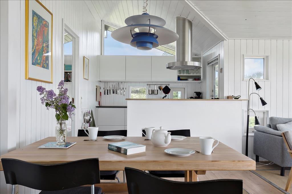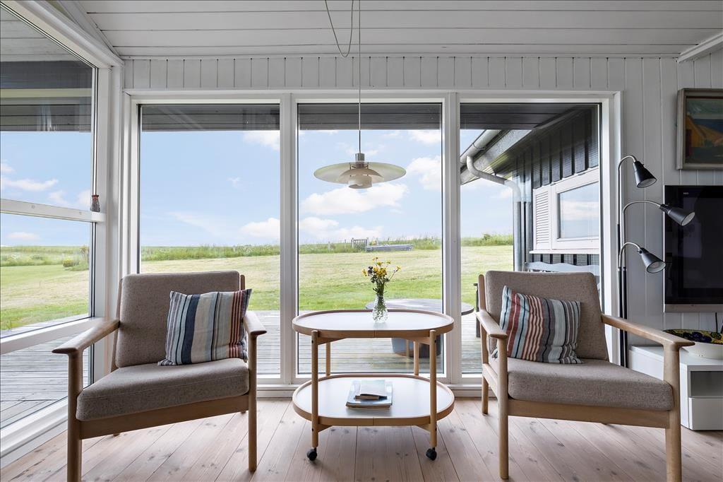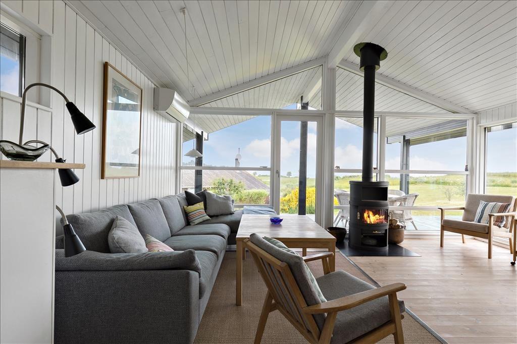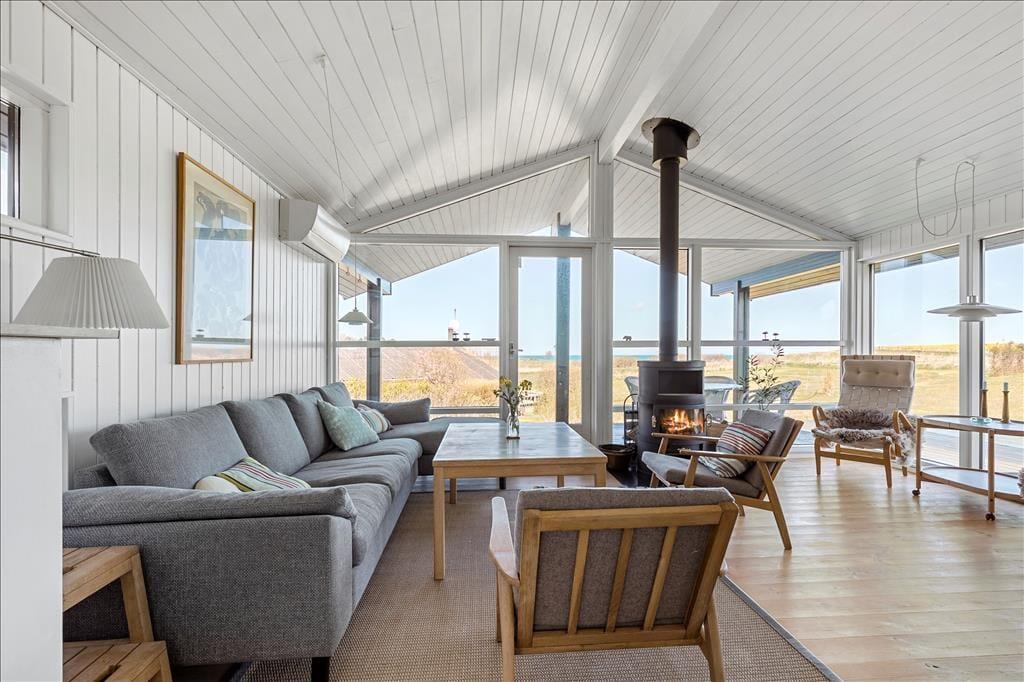 Huset indeholder rummelig og lys stue med TV, varmepumpe, brændeovn og fantastisk udsyn over Sejerø Bugten gennem de store panoramavinduer. Der er nyt og flot badeværelse med brus samt 3 rigtig gode og smukt indrettede soveværelser. 2 med dobbeltsenge(180cmx200cm) og et med køjeseng. Børneværelset har skrivebord under vindue også med udsyn over Sejerø Bugten og kan med fordel også bruges som arbejdsværelse. Køkkenet er åbent og indeholder opvaskemaskine. I entréen er der vaskemaskine huset er i det hele taget meget smagfuldt indrettet med øje for detaljerne. Hele huset omgives af en pragtfuld træterrasse, hvor solen og den fantastiske udsigt kan nydes både dag og aften. En del af terrassen er overdækket.