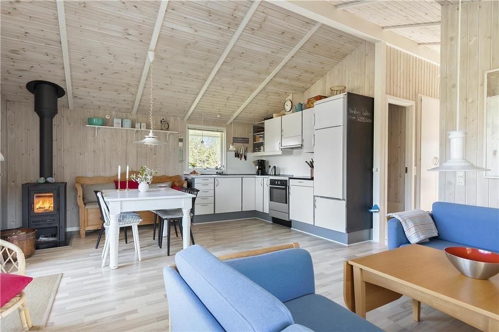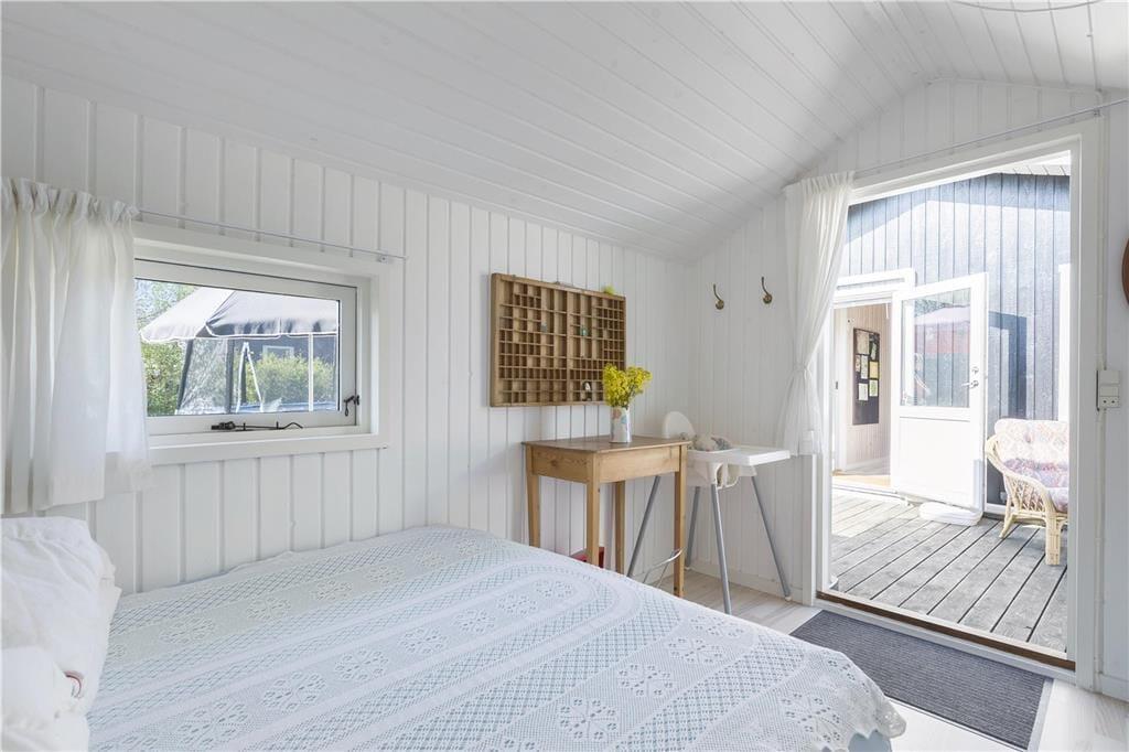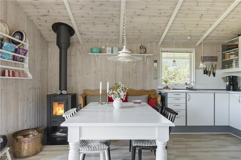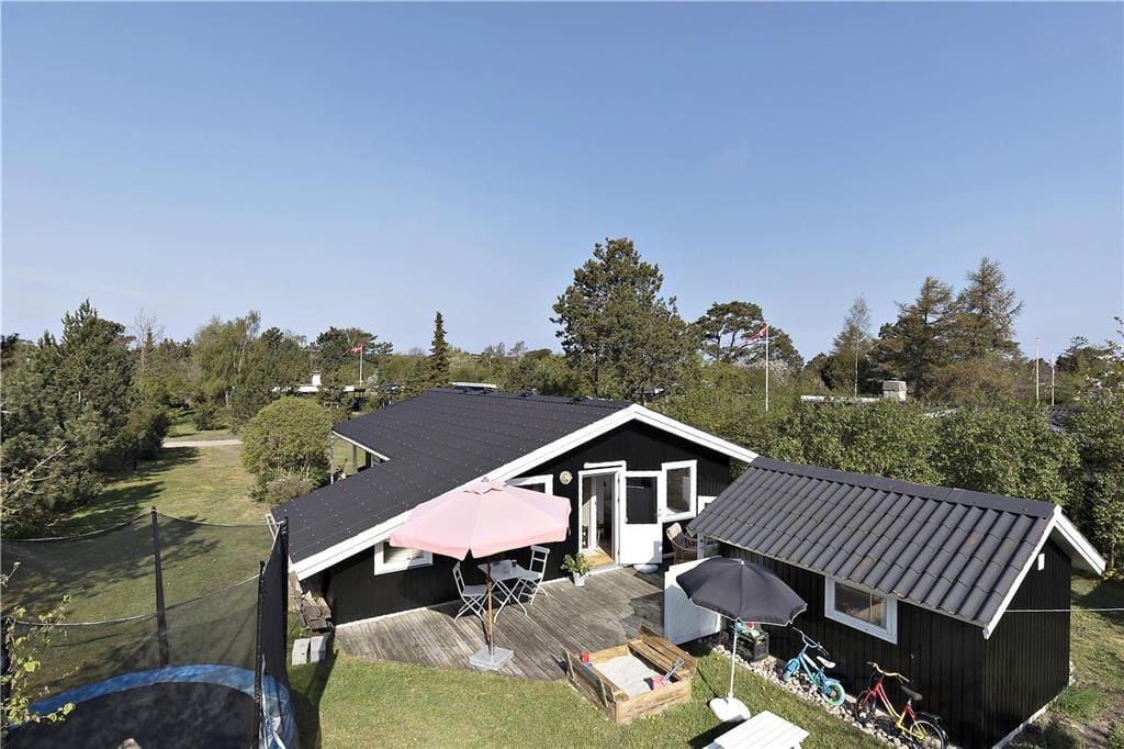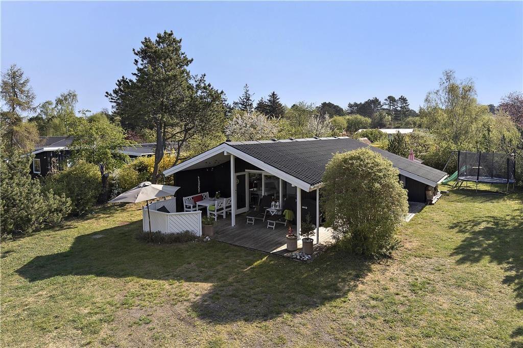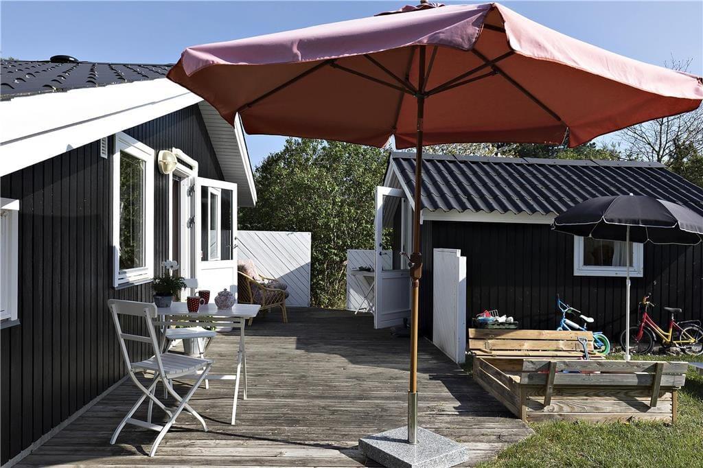Dejlig stue i forbindelse med åbent køkken. Her kan du fordybe dig i en god bog eller I kan hjælpes med at tilberede en lækker frokost. Der er et dejligt badeværelse med brus og tre gode soveværelser, det ene med dobbelt seng, de andre med køjesenge samt et dejligt anneks med dobbeltseng. Der er en rigtig dejlig terrasse opdelt i en overdækket og en åben afdeling, her kan I nyde solen fra morgen til aften. Børnene vil elske at overnatte i den tilhørende shelter eller bare lege i haven, hvor der både er gynger, sandkasse og legehus.