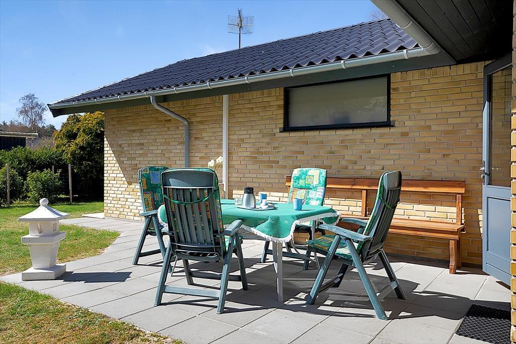 Særdeles hyggelig stue hvor du kan nyde en kaffe, fordybe dig i en god bog eller I kan spille et slag kort med børnene. Skønt åbent køkken med mulighed for at hjælpes med tilberedning af en god frokost samt fire fine soveværelser, de to med dobbeltsenge, de to med enkeltsenge. Samt dejligt badeværelse med brus. Endvidere er der adgang til nydeligt skur med toilet og vaskemaskine. Husk også at benytte husets dejlige terrasse, der er opdelt i både en overdækket og en åben afdeling. Her er det oplagt at komme et par gode bøffer på grillen, hælde et glas bobler i glasset eller bare nyde solen og udsigten over den dejlige grund. Efter en skøn dag på stranden har du mulighed for at tage dig et bad under husets udebruser.