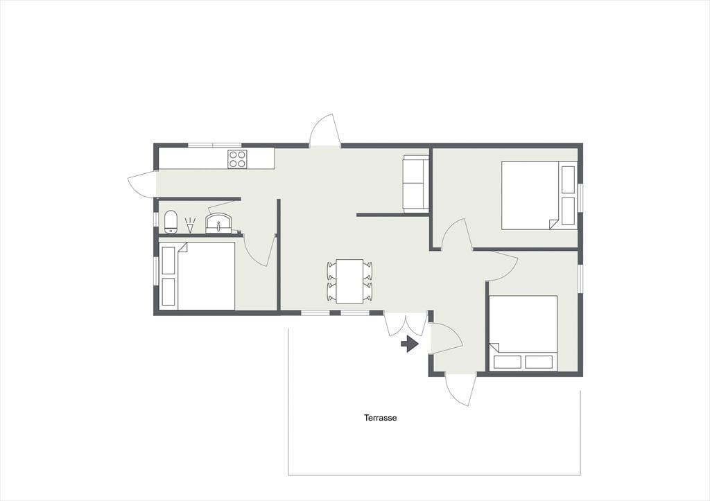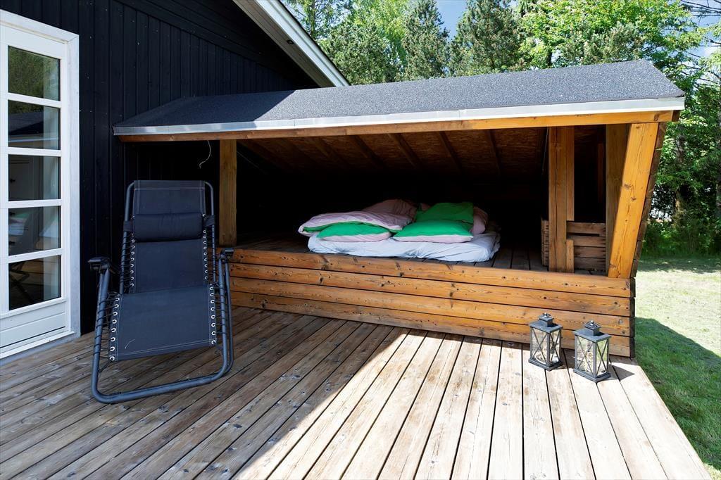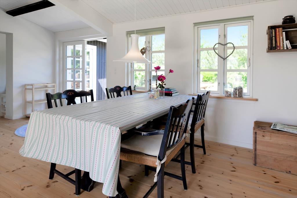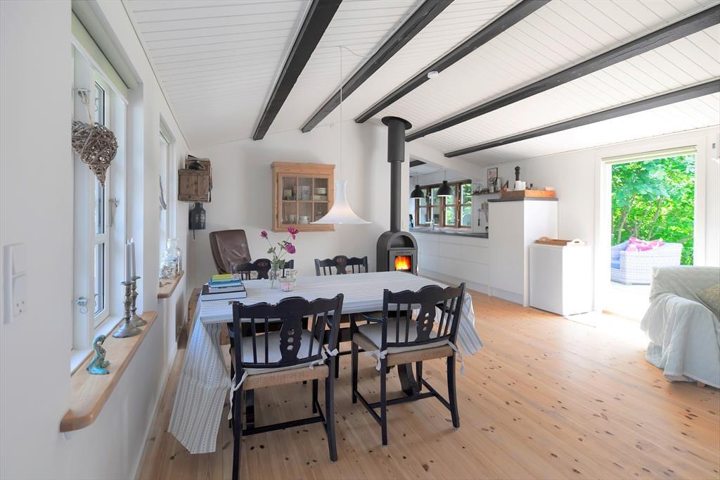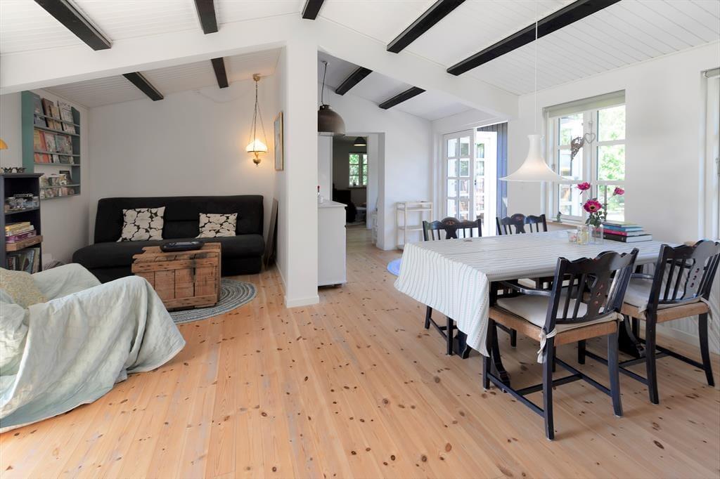 I sommerhuset, vil du med det samme få følelsen af at være velkommen. Du vil hurtigt få skuldrene ned og mærke, at det endelig er tid til ferie. I den skønne stue, der er placeret i forbindelse med det åbne køkken, kan I samles omkring spisebordet til et brætspil eller en god frokost. Hvis I sætter jer ud i shelteren efter at børnene er lagt i seng, og deler en flaske vin mens samtalen flyder og I kigger på stjernerne, kan det kun blive en hyggelig aften.