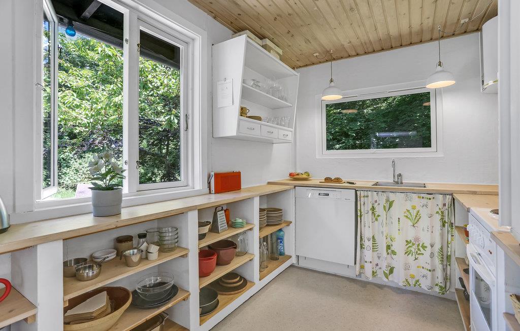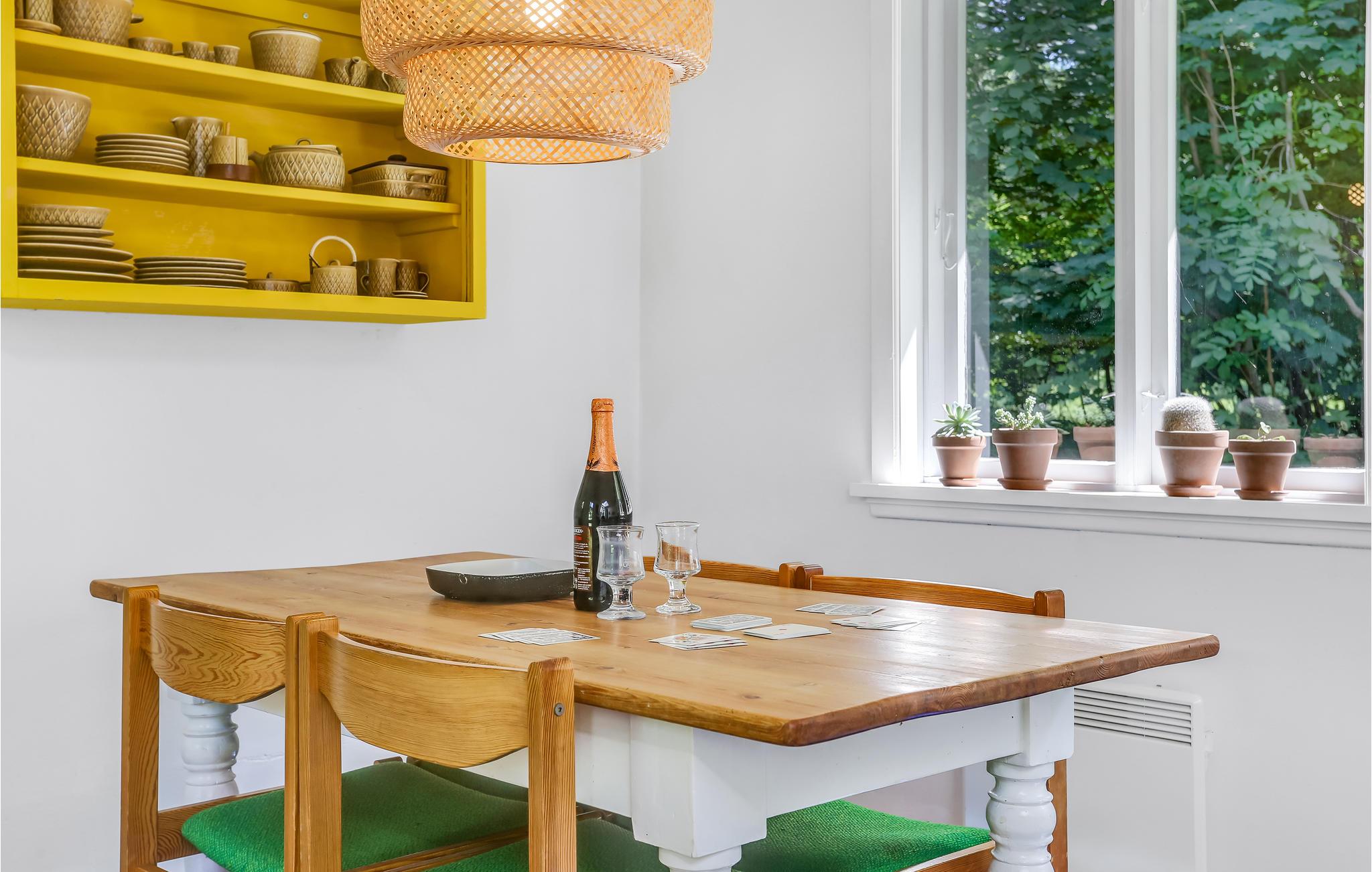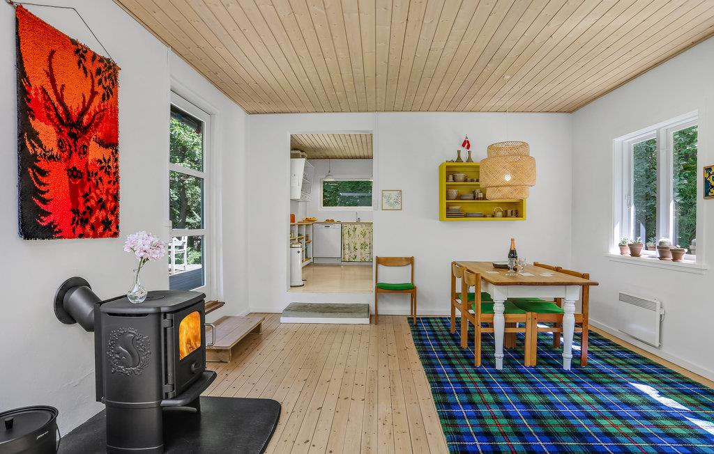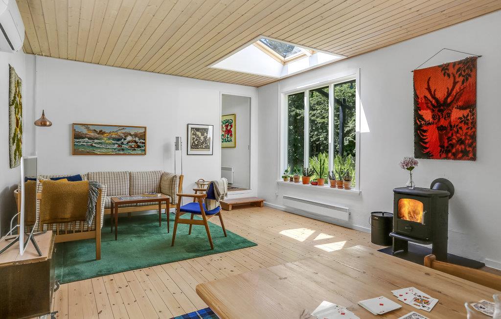 Velkommen til dette skønne sommerhus, der med tre soveværelser har god plads til familie eller venner. Husets hjerte er den hyggelige opholdsstue med sofahjørne og spiseplads, hvor I kan slappe af foran brændeovnen eller nyde et lækkert måltid. De mange vinduer sørger for et dejligt lys og skøn udsigt til haven. Der er også et køkken og et badeværelse.