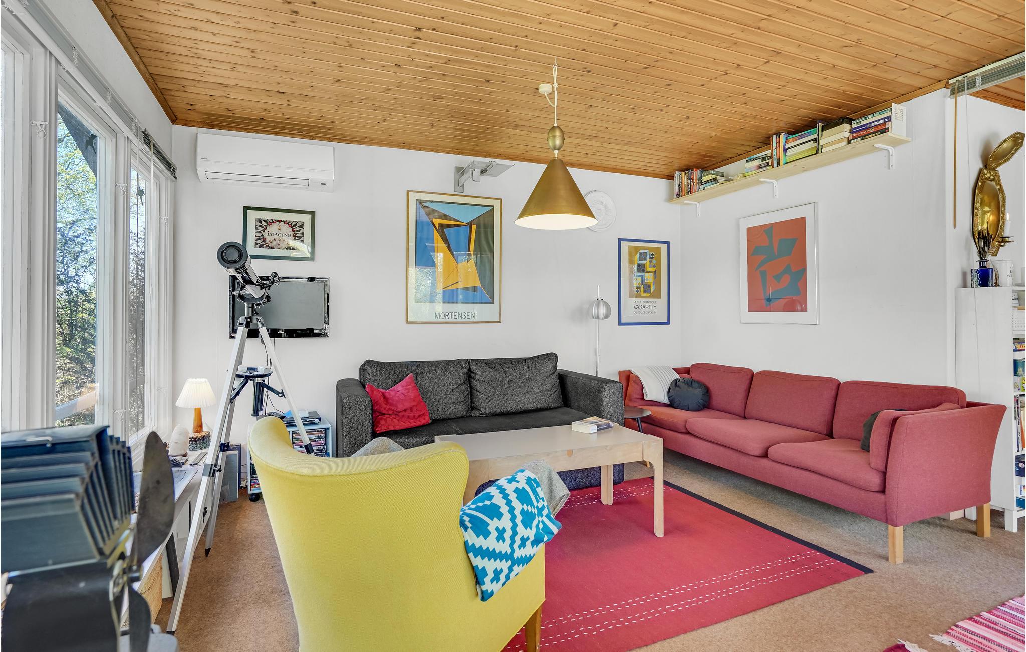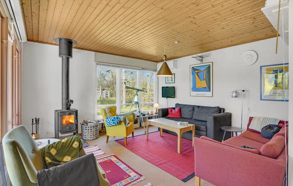 Glæd jer til en afslappende ferie i landlige omgivelser med base i dette skønne sommerhus på en stor grøn grund. Her kan I tilbringe en vidunderlig ferie med familien. Huset er godt indrettet med pæne møbler og brændeovn, hvilket skaber en hyggelig atmosfære. De charmerende detaljer ses overalt, så her får I skønne rammer, hvor I kan slappe af mellem strandturene og jeres udflugter.