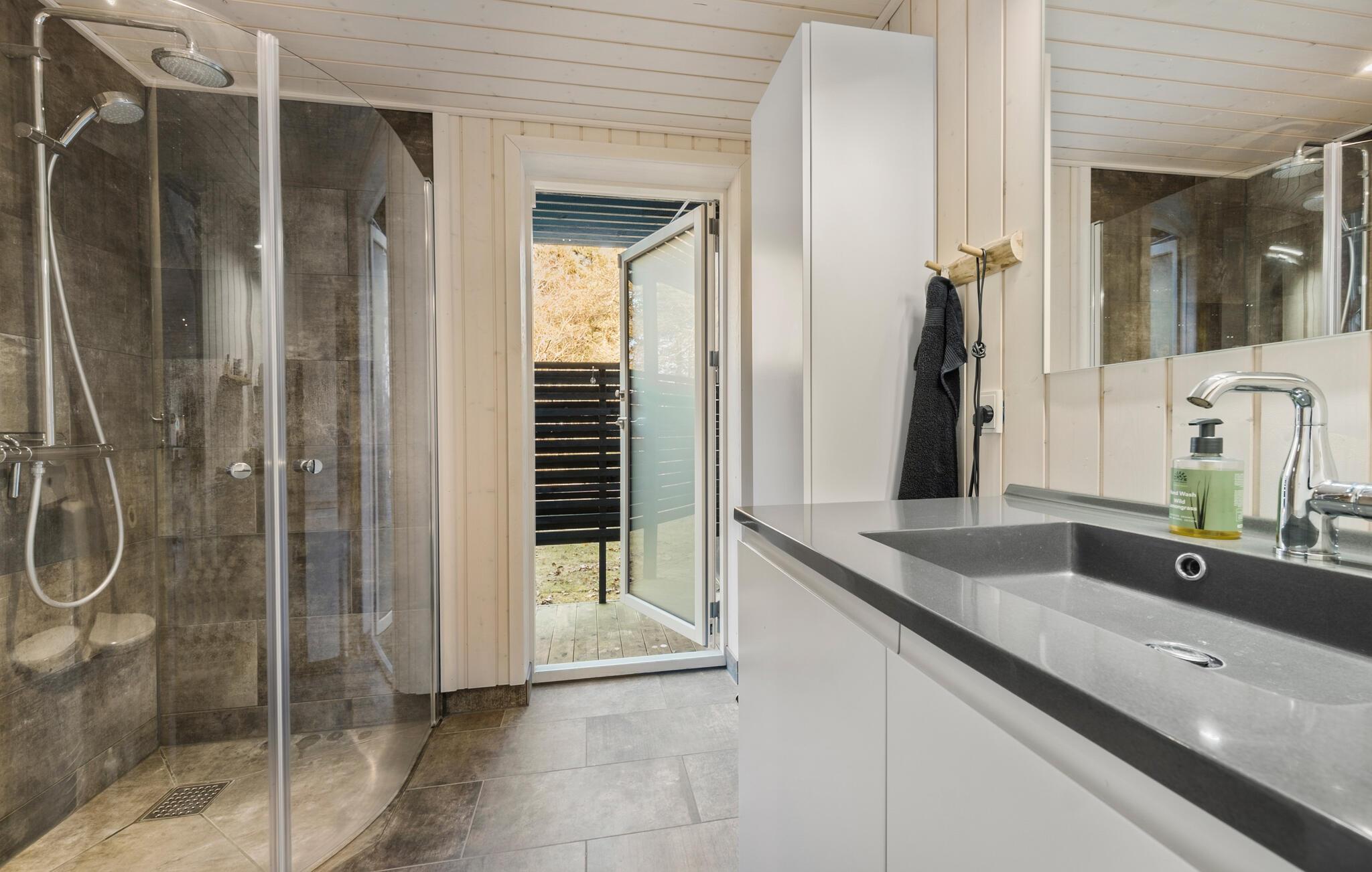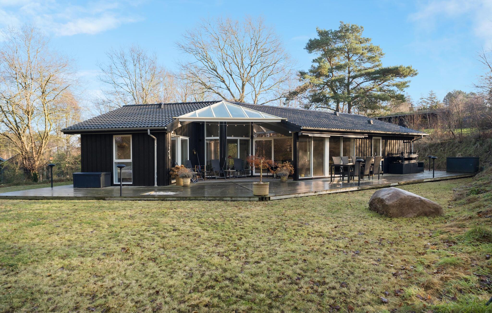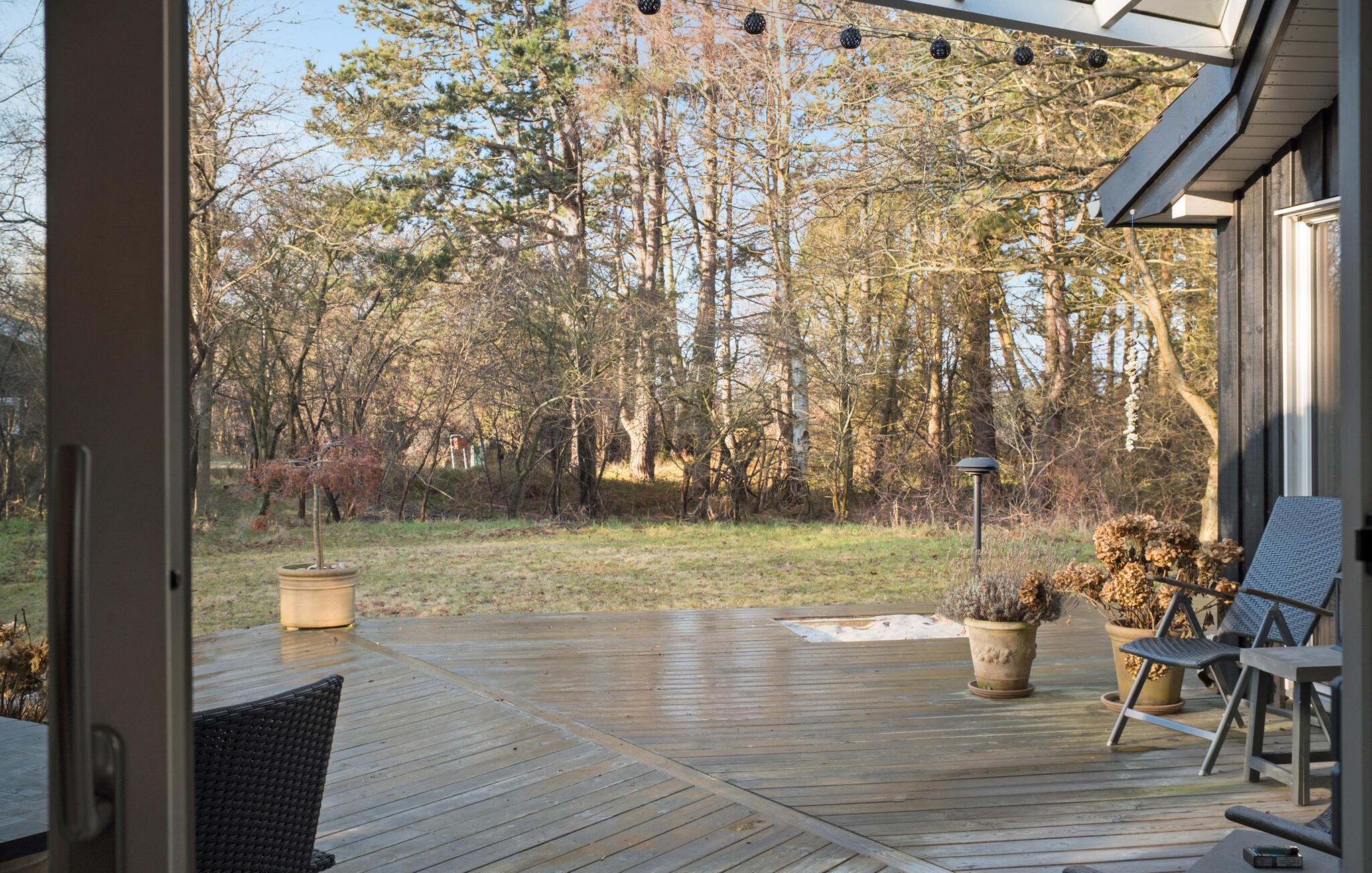 Nyd et moderne sommerhus med stor terrasse og have tæt på Veddinge Bakkers naturskønne omgivelser.