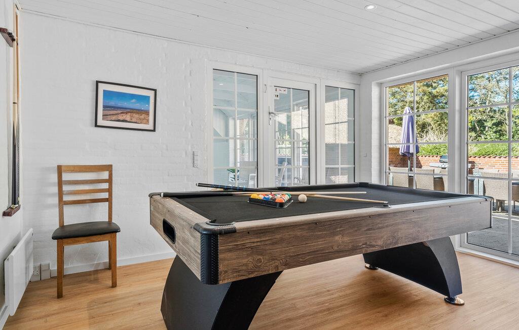 Velkommen til dette komfortable bondehus, udstyret med mange fantastiske ekstrafunktioner, som tilbyder jer den optimale base for afslappede familiesammenkomster eller ferier med venner. Glæd jer til fælles madlavningsaftener og hyggelige måltider ved det lange spisebord. Lær børnene at svømme i poolen, nyde rolige øjeblikke i saunaen, spille PlayStation eller billard eller streame en spændende film.