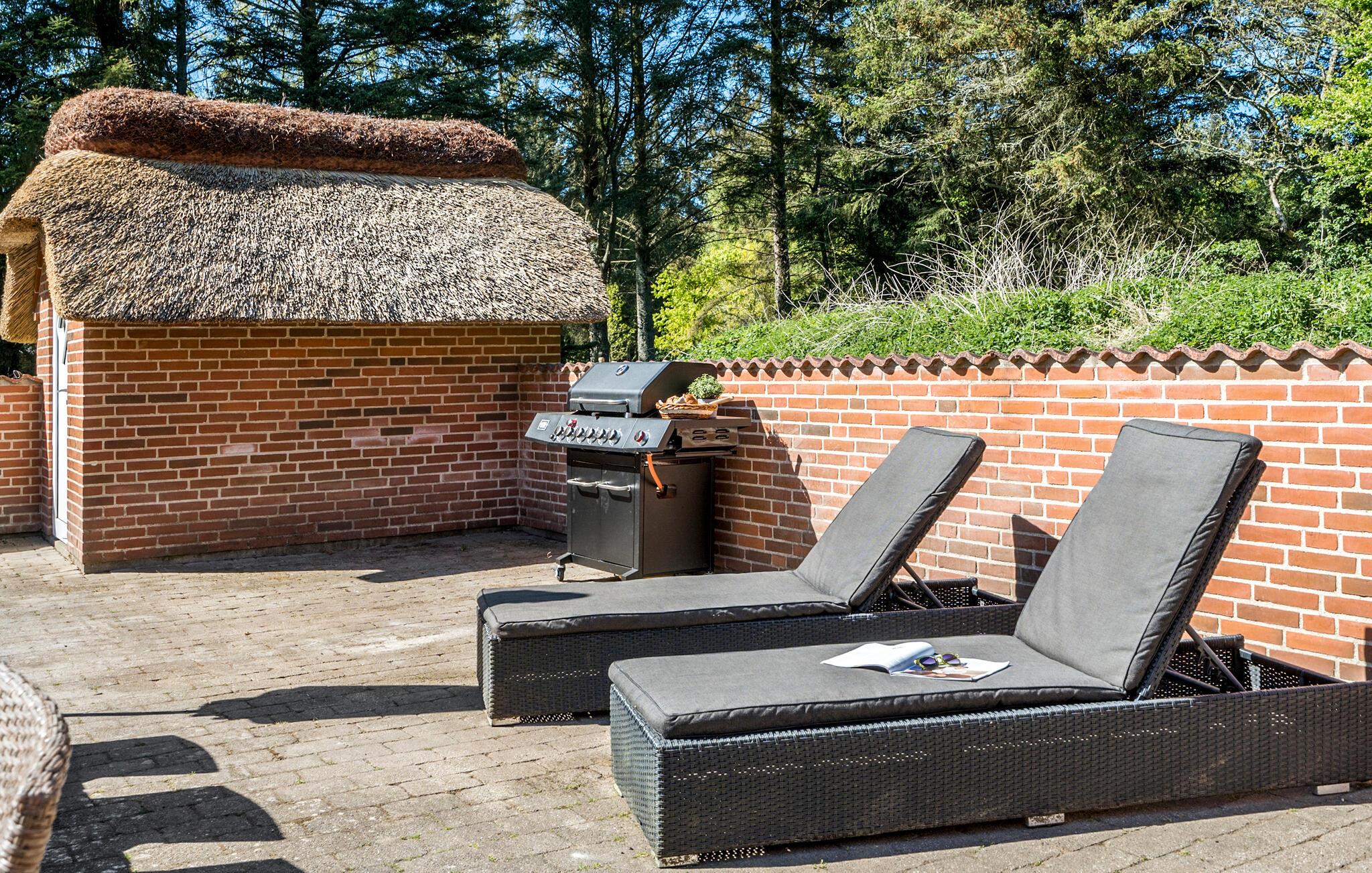 På den solrige terrasse kan I grille og spise udendørs med en stor gruppe, mens jeres små gæster nyder de forskellige legemuligheder i den store have. Forkæl jer selv med en afslappende oplevelse i spabadet og nyd solen på de behagelige liggestole.