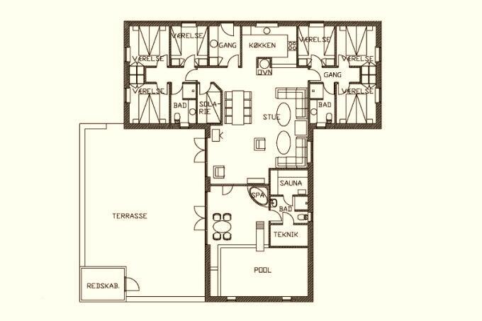 Poolhuset, som er opført i 1992 og renoveret i 2010, er beliggende på 5000 m² stor naturgrund, med gode parkeringsmuligheder. Børnene har legetårn, trampolin og beach volly bane til rådighed. På terrassen er der havemøbler, liggestole og grill til en dejlig sommeraften. Der er ikke en parasol. Poolafdelingen tilbyder spabad, børnepool og vandrutschebane samt badeværelse med indgang til sauna. Husets 3 badeværelser er med toilet, håndvask, bruseniche og gulvvarme. En energibesparende varmepumpe / aircondition, el-varme og den hyggelige brændeovn opvarmer huset. I poolhuset er der 12 sovepladser: 4 værelser med dobbeltsenge og 2 værelser med hver 2 enkeltsenge. Der er TV2 Kanaler i huset. 2 husdyr er tilladt. RYGNING ER IKKE TILLADT.