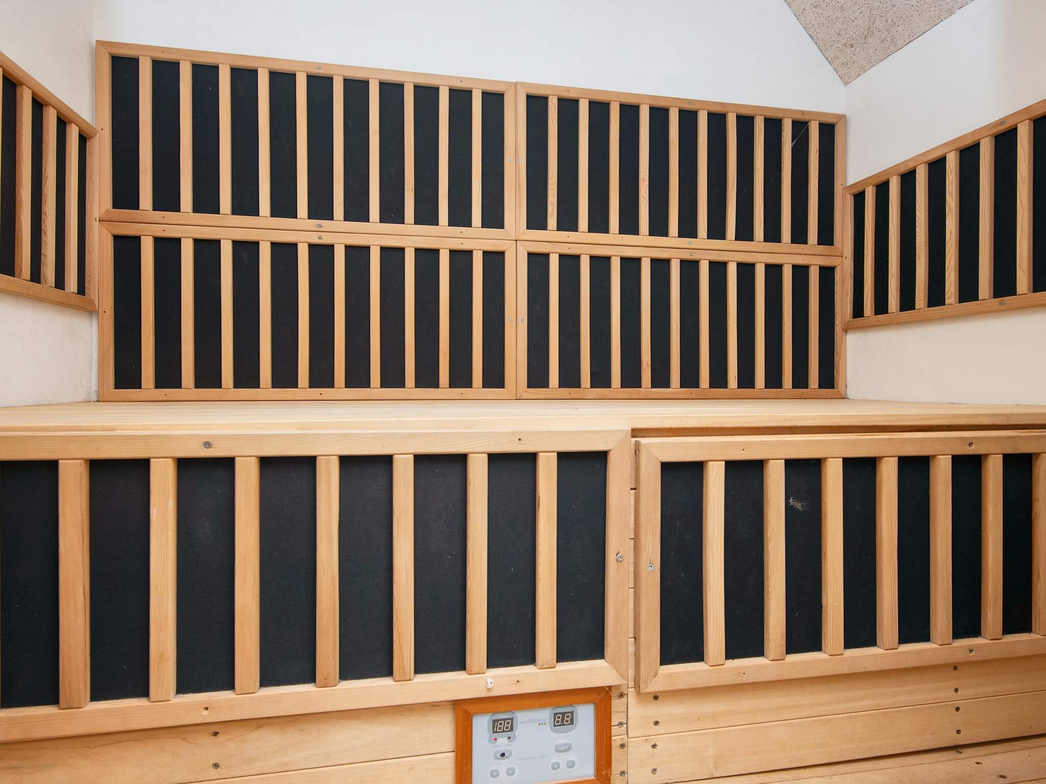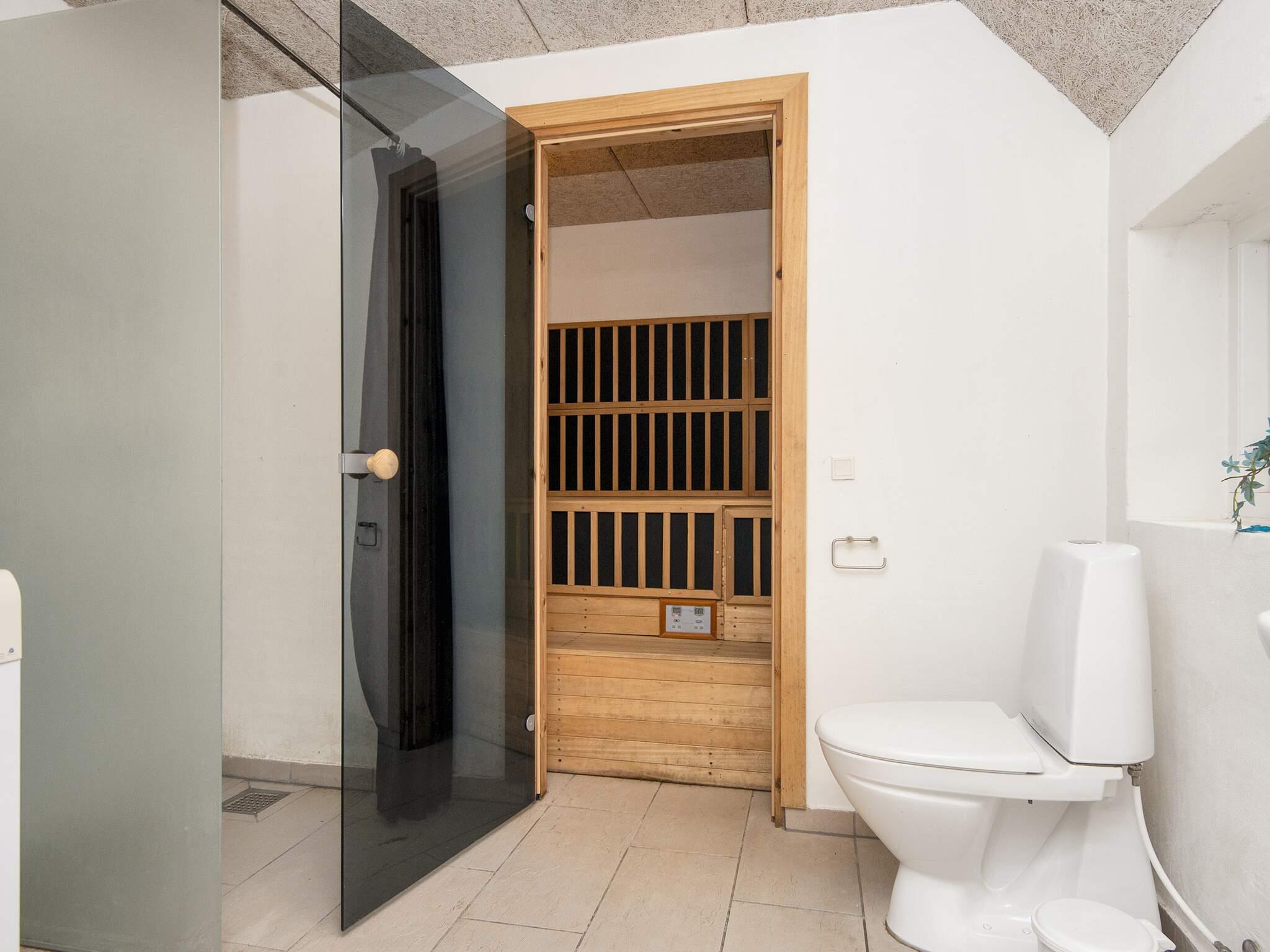 Dette feriehus er det idelle valg, hvor gæsterne kan hygge sig både ude og inde. I det herlige poolrum kan hele familien more sig i den 32 m² store pool med vandrutschebane eller det indbydende 7 personers spabad. I forbindelse med poolrummet er et badeværelse, hvor der er direkte adgang til en infrarød kabine. Huset har et 50 m² stort aktivitetsrum med billard og fladskærms-tv med parabol. På den lukkede terrasse er der stor mulighed for at nyde solen i havemøblerne og aftensmaden fra grillen. I poolhuset er der 3 badeværelser med toilet, håndvask, bruseniche og gulvarme. Den hyggelige brændeovn og det økonomiske jordvarmeanlæg opvarmer huset. I poolhuset er der 18 sovepladser 4 værelser med dobbeltsenge 2 værelser med hver 4 køjepladser 1 værelse med 2 enkeltsenge. 2 husdyr er tilladt Der er ikke TV2 kanal eller betalingskanaler i huset. RYGNING ER IKKE TILLADT.