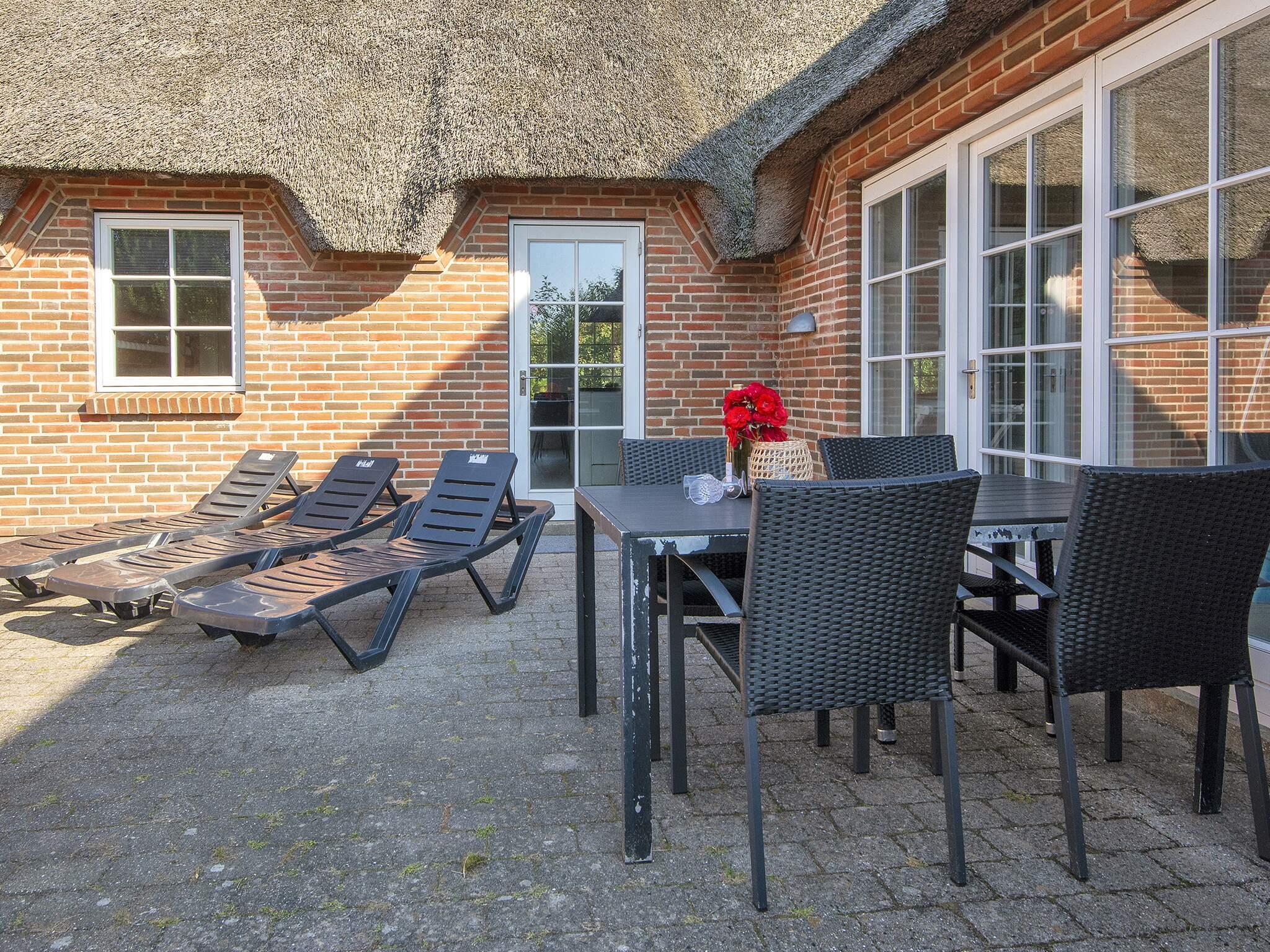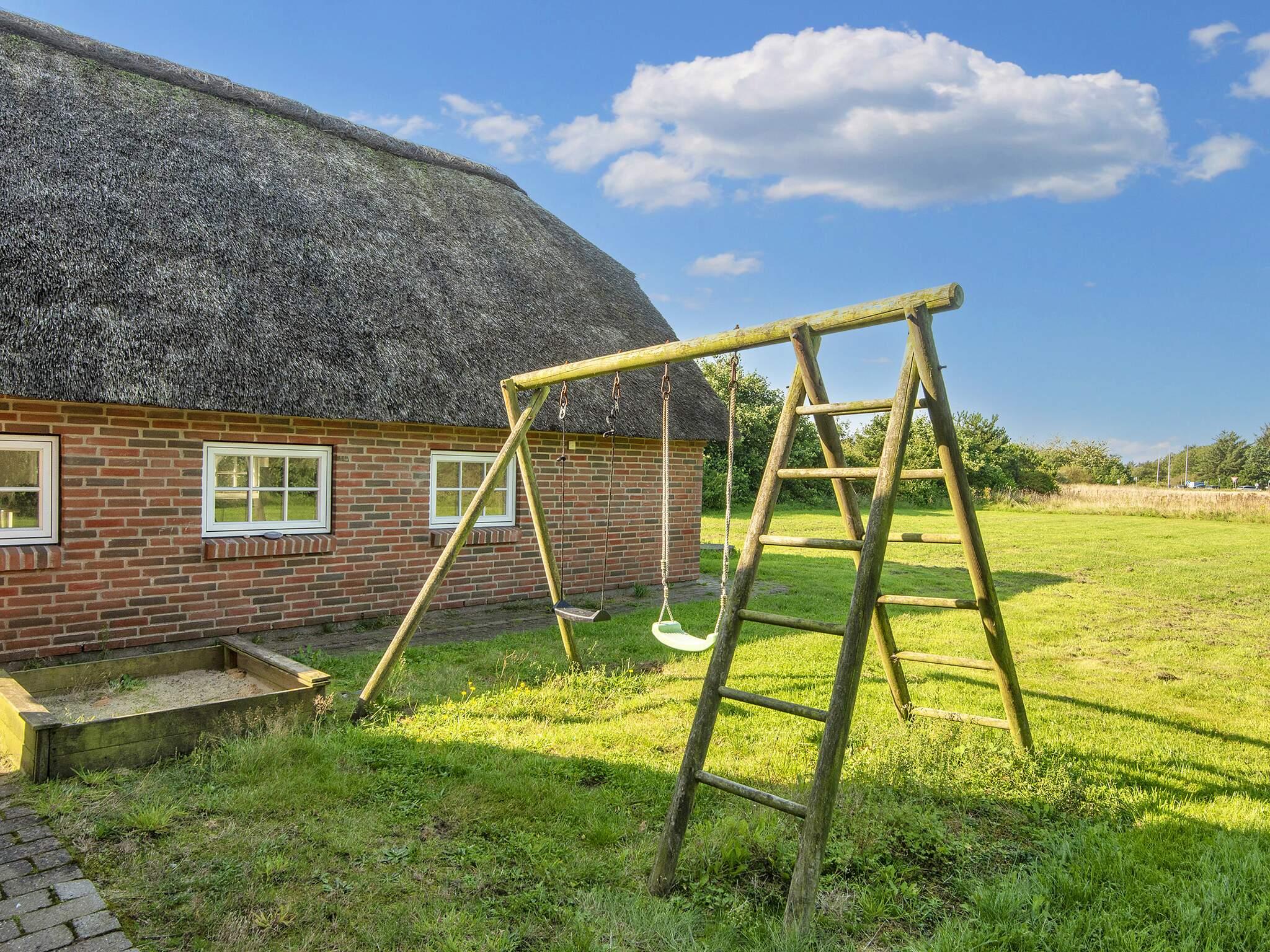 Dette 300 m² store stråtækte poolhus ligger på 3500 m² naturgrund ca 1,5 km fra Vesterhavet, hvor der er gynger og sandkasse til børnene.