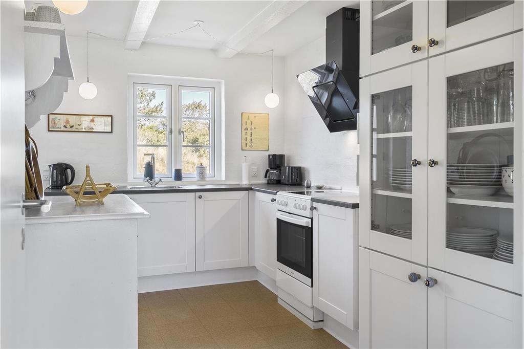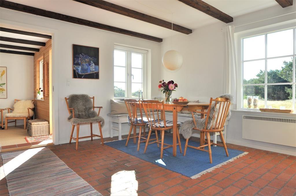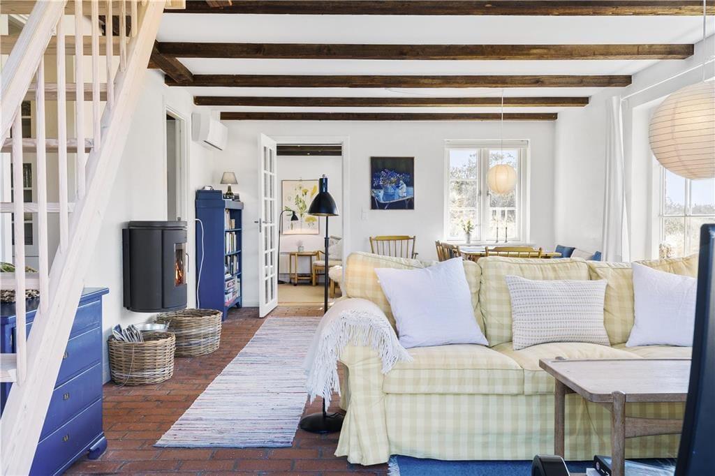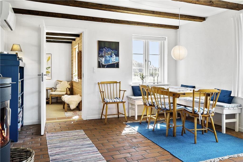 Glæd jer til at træde ind i et sommerhus med masser af sjæl og autentisk charme – det perfekte sted til en afslappende ferie i hyggelige rammer. Allerede når du træder ind, vil du mærke stemningen: De synlige bjælker i loftet og det idylliske landkøkken danner rammen om ægte feriehygge med familien.