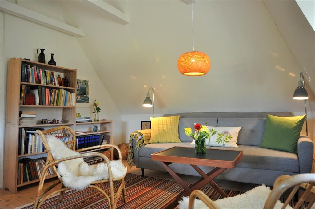 I stueetagen bliver I mødt af to hyggelige soveværelser, et stort badeværelse, et charmerende køkken og en hyggelig stue med brændeovn til de kolde dage, der indbyder til fælles madlavning og rolige morgener med duften af frisk brygget kaffe. I den lille forstue er der plads til læsning, og hygge for to personer.