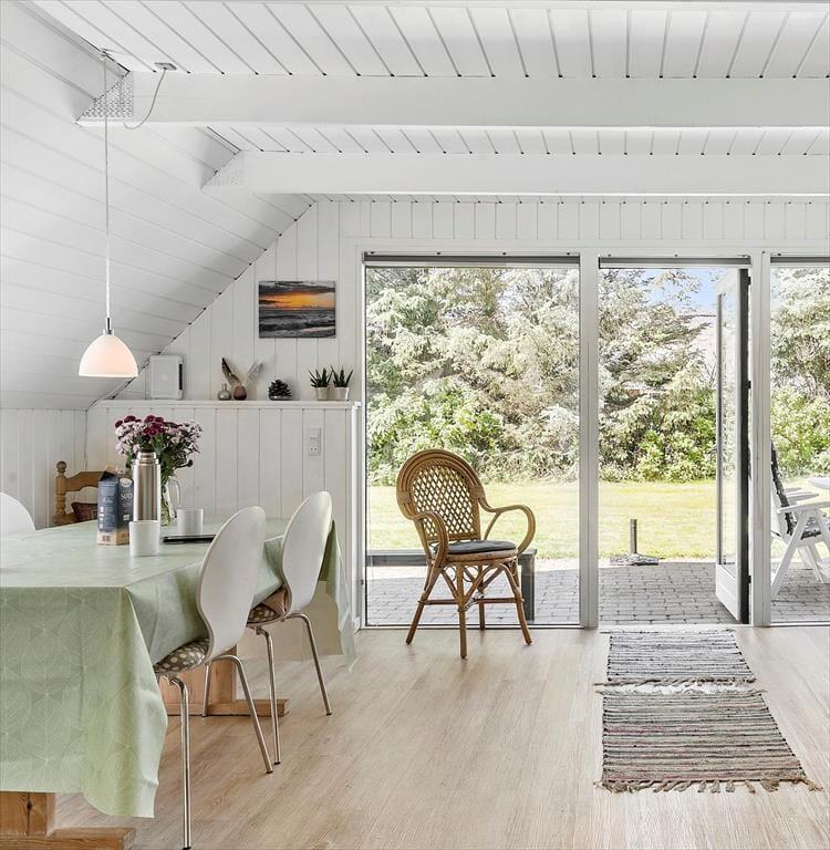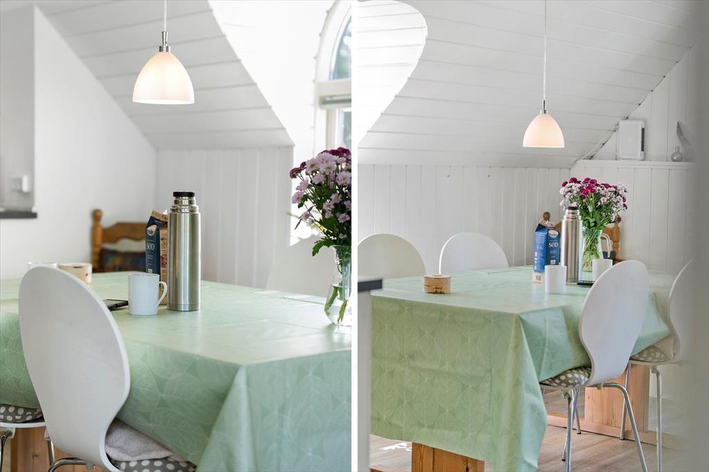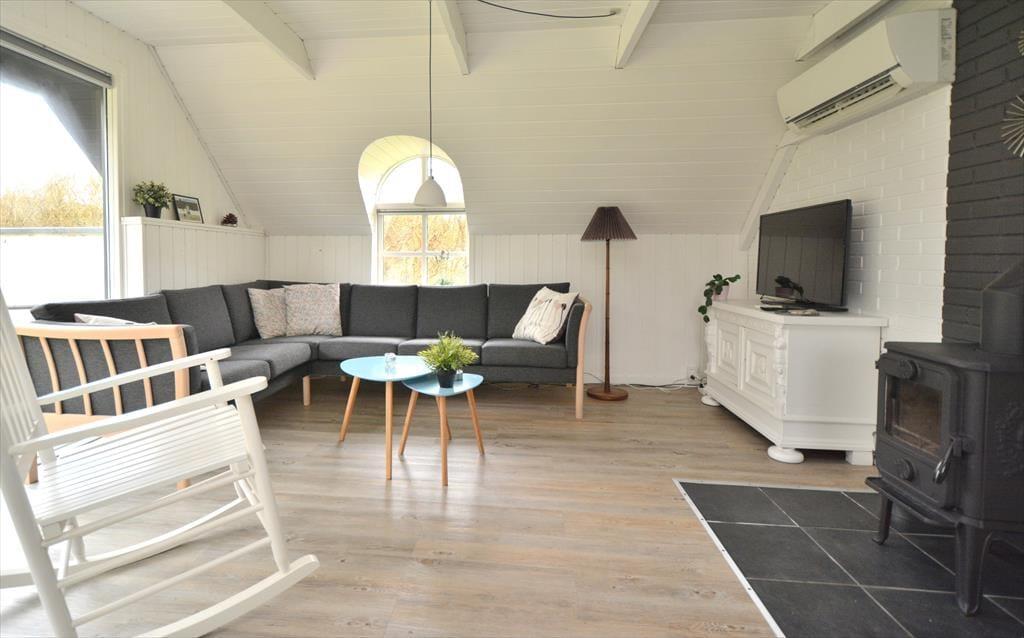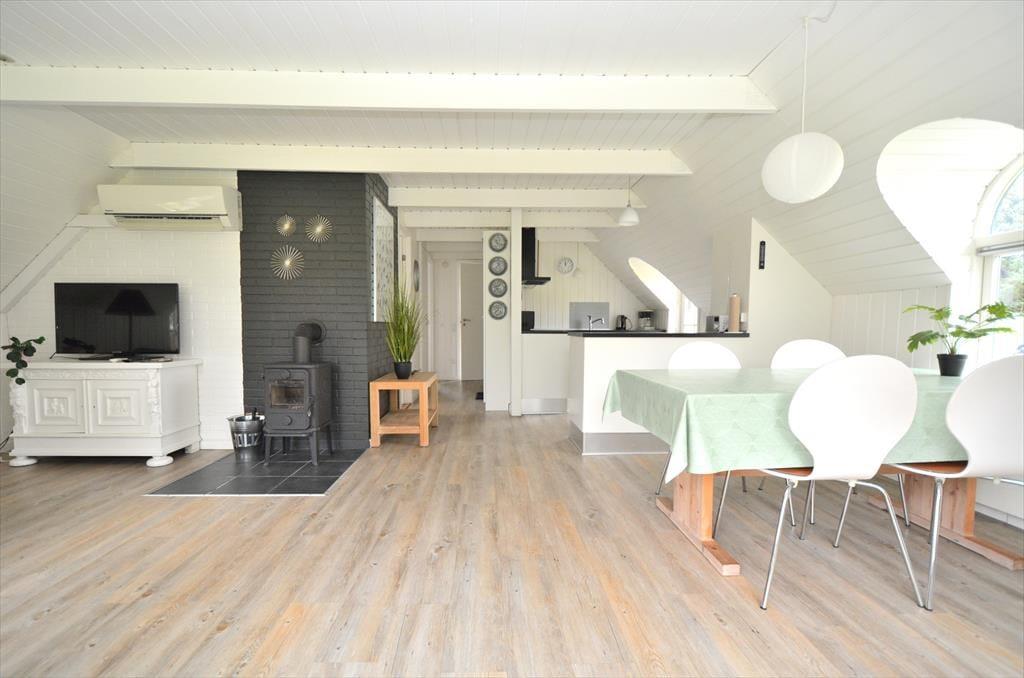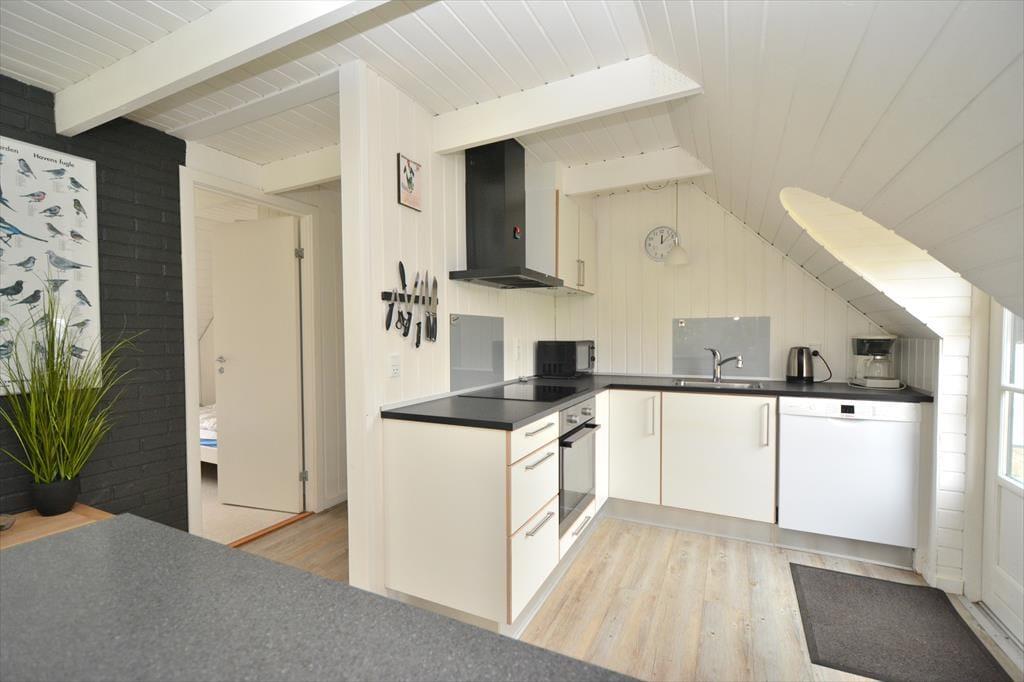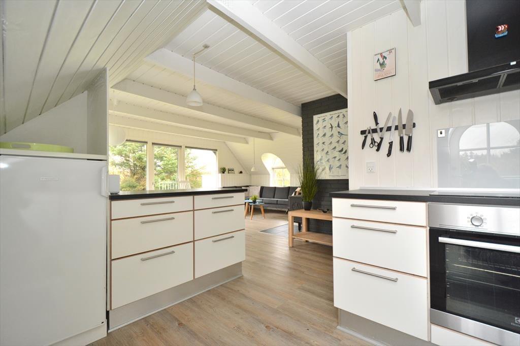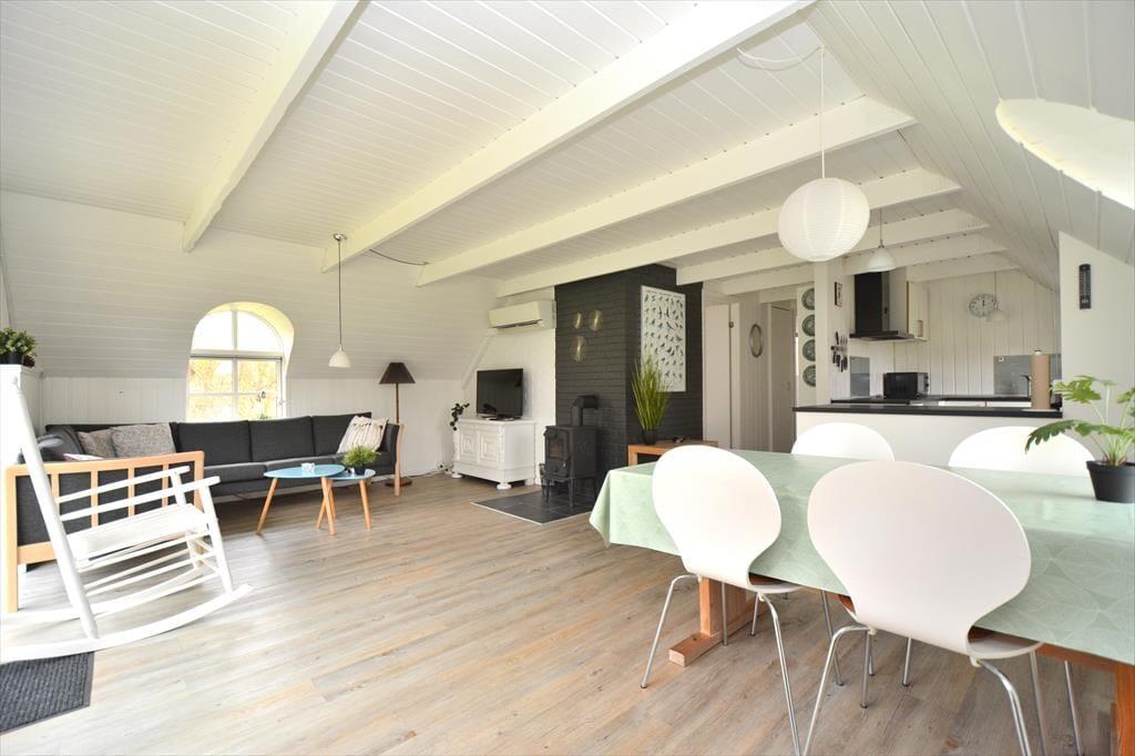 Skønt og lyst feriehus der er oplagt til uendelige hyggelige stunder for hele familien. Træd ind i det smukke køkken alrum hvor der er kælet for detaljen, og sammen med den charmerende nye brændeovn giver det en helt fantastisk varme og hygge til rummet. Sæt jer omkring det dejlige spisebord og nyd den fantastiske udsigt udover haven gennem de store vinduer der skaber et dejligt lysindfald. Lav mad i det skønne køkken, og lad den friske luft strømme ind af terrassedøren, hvilket også gør det nemt at tage maden med udenfor en skøn sommeraften.