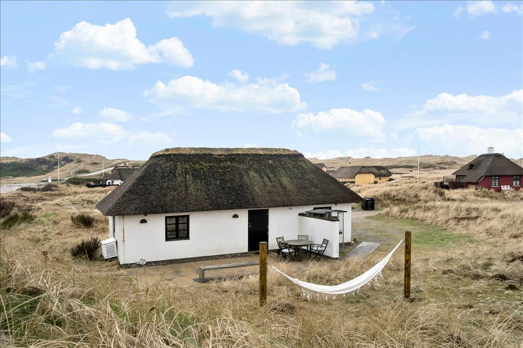 Huset ligger på en stor naturgrund hvor I har den skønneste udsigt udover klitterne og kun få minutters gang, med mindre end 500 meter til det smukke og til tider vindblæste Vesterhav. Området er et af de mest naturskønne områder langs den jysk vestkyst som byder på en masse dejlig fred og ro. I området finder I inden for kort gåafstand både iskiosk og indkøbsmuligheder. Ønsker I et større udvalg når I handler så tag til Søndervig som ligger blot 15 minutters kørsel fra området, indenfor samme afstand finder I, mod nord, Thorsminde Havn hvor der er en velsorteret fiskebutik.