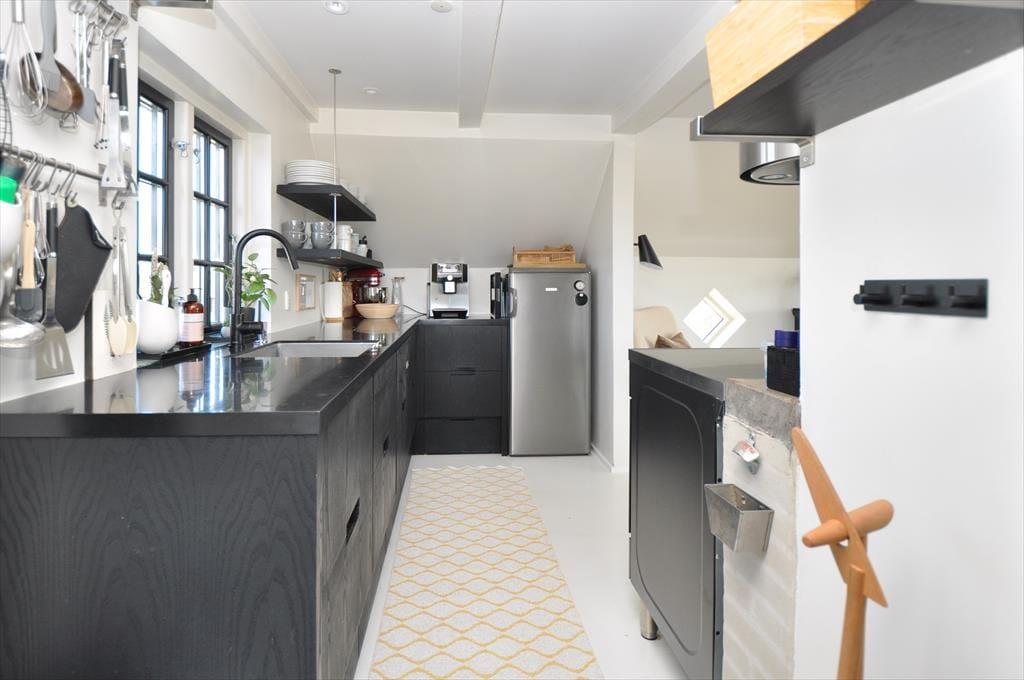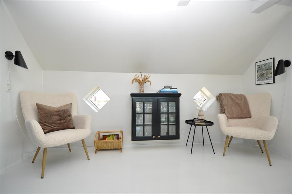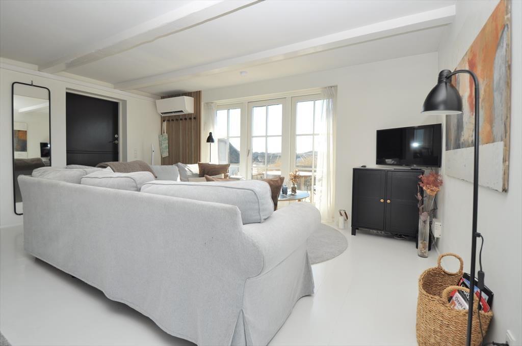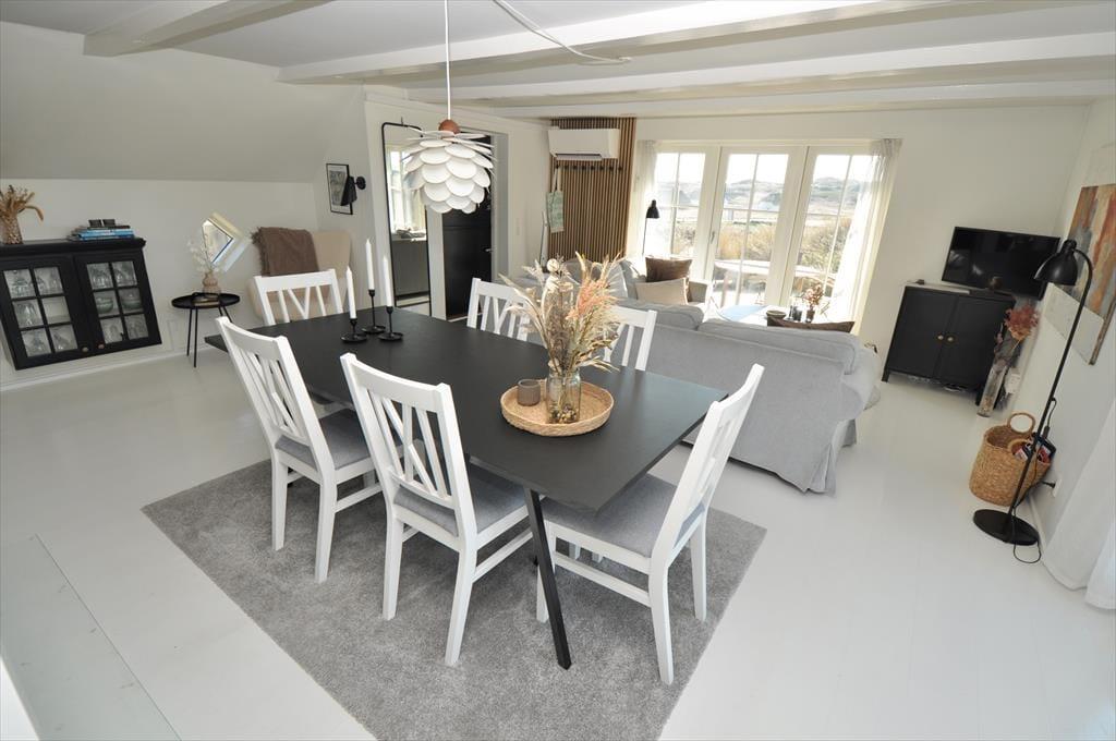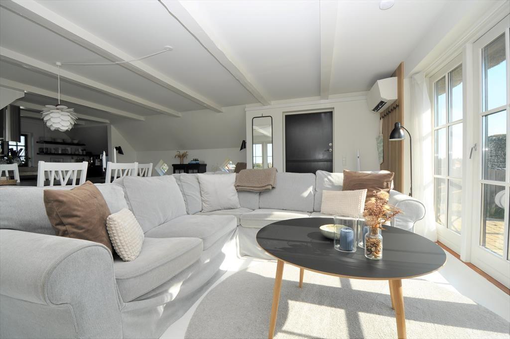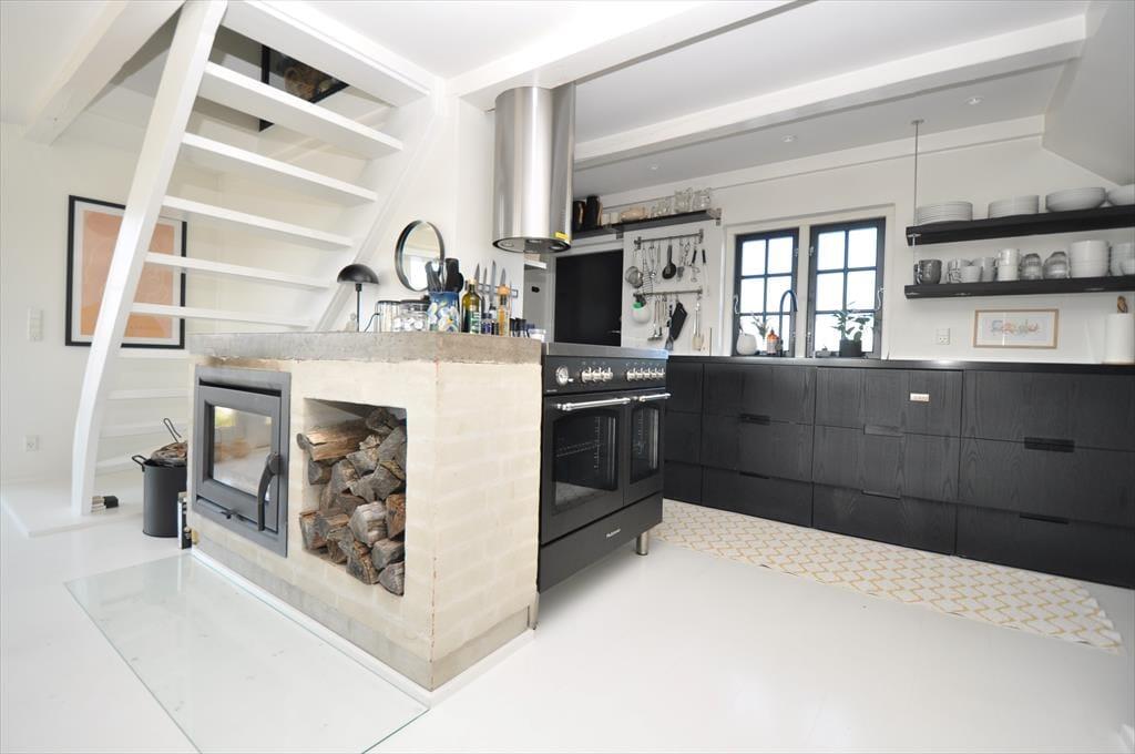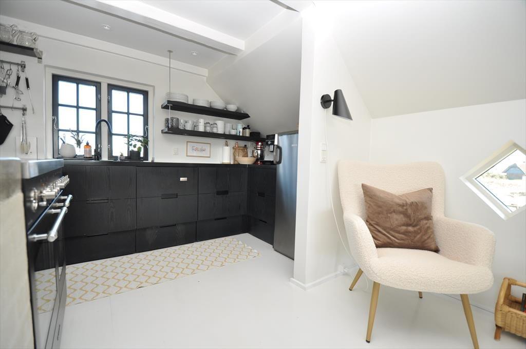 Smukt og lyst indrettet feriehus hvor der emmer af overskud og ro, her kan I trække stikket og nyde feriens hyggelige stunder for hele familien. Kast jer ud i spænende madlavning i det smukke køkken der ligger i åben forbindelse med opholdsstuen, her har I masser af muligheder for at være sammen på trods af at I laver forskellige ting, eller lad maden simre uden af bekymre jer om den brænder på. Smid jer i det hyggelige sofahjørne og lad roen der sænke sig over jer, og glem ikke at tænde op for den hyggelige indbyggede brændeovn der spreder en hyggelig knitrende lyd.