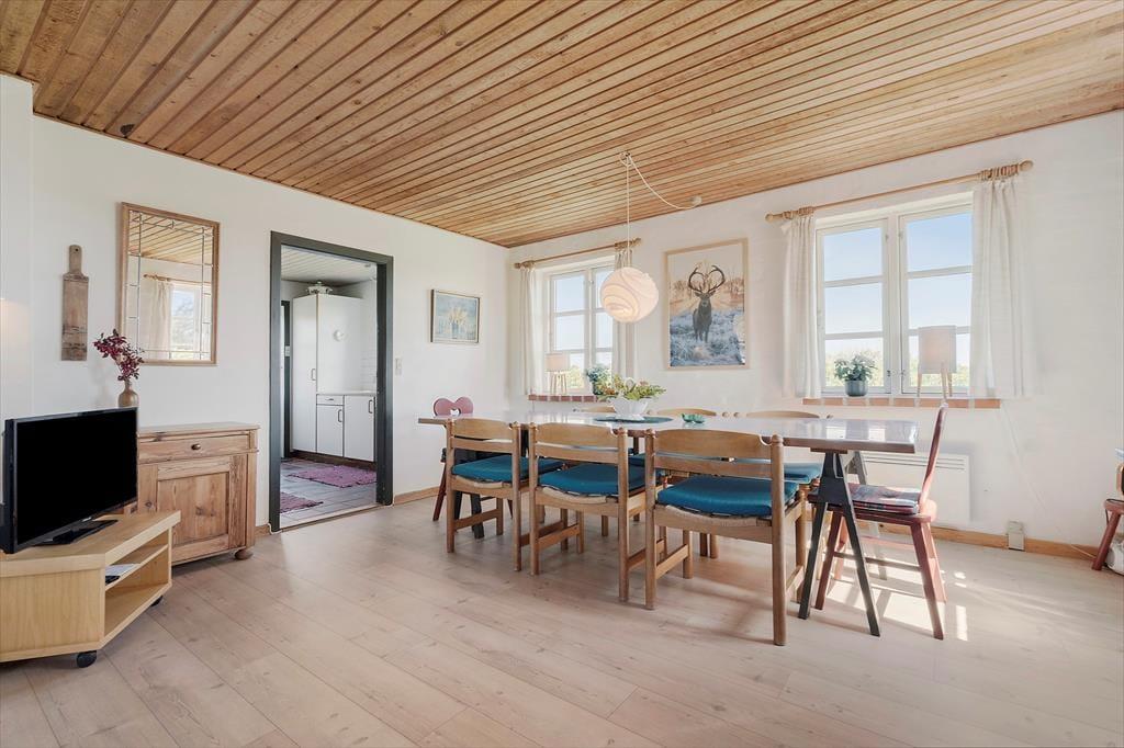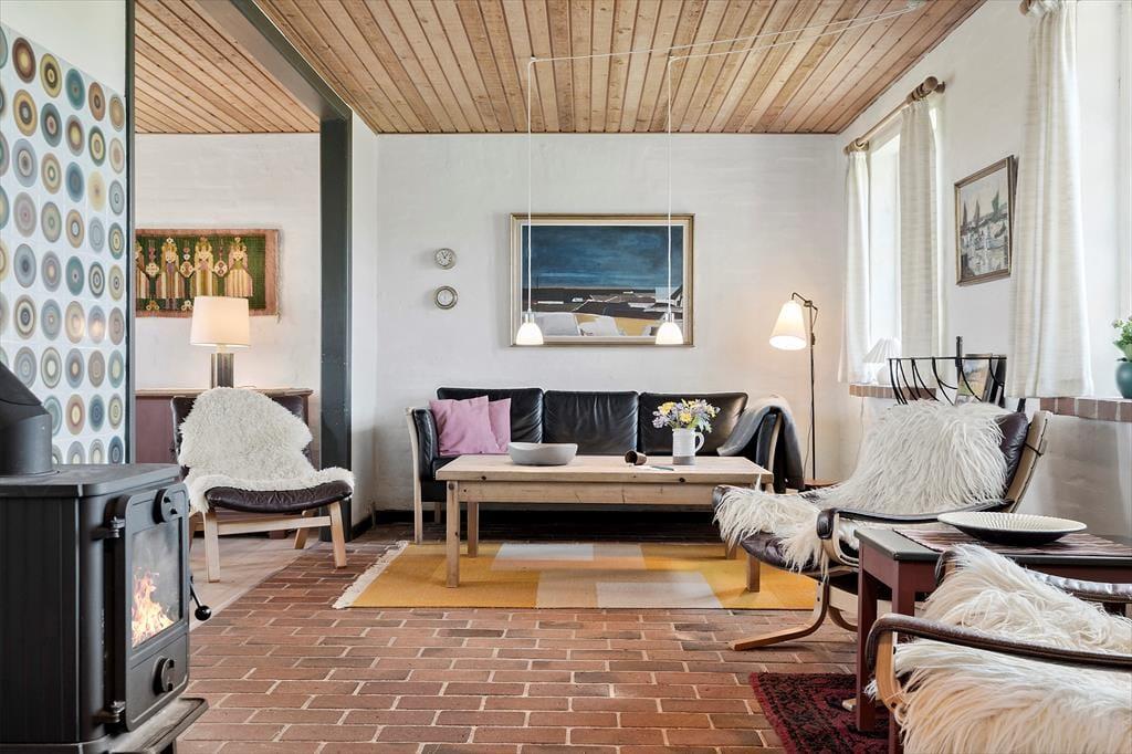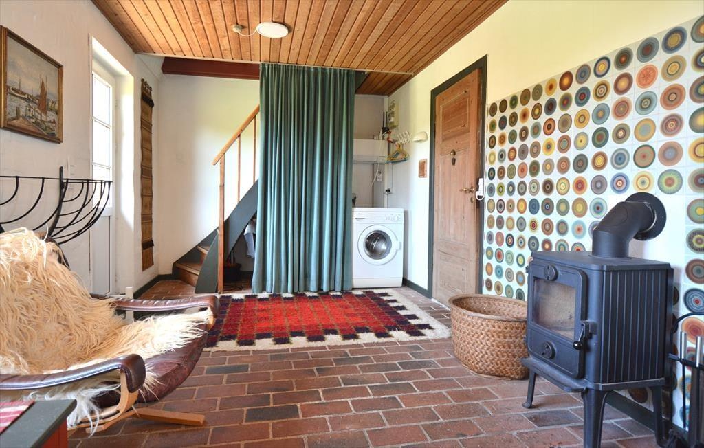 I dette ældre og meget hyggelige sommerhus bliver I mødt af en hyggelig atmosfære der emmer af ro. Her kan I trække stikket og koble helt fra efter hverdagens stress og jag. Sæt jer i den yderst hyggelige stue og glem ikke at tænde op for den gamle og meget charmende brændeovn der spreder en fantastisk varme og en hyggelige knitrende lyd. Når I skal lave mad i det dejlige køkken, skal I ikke være bekymrede for at gå glip af samtalen der flyder omkring spisebordet, fordi køkkenet ligger i åben forbindelse med spiseafdeling og opholdsstuen.