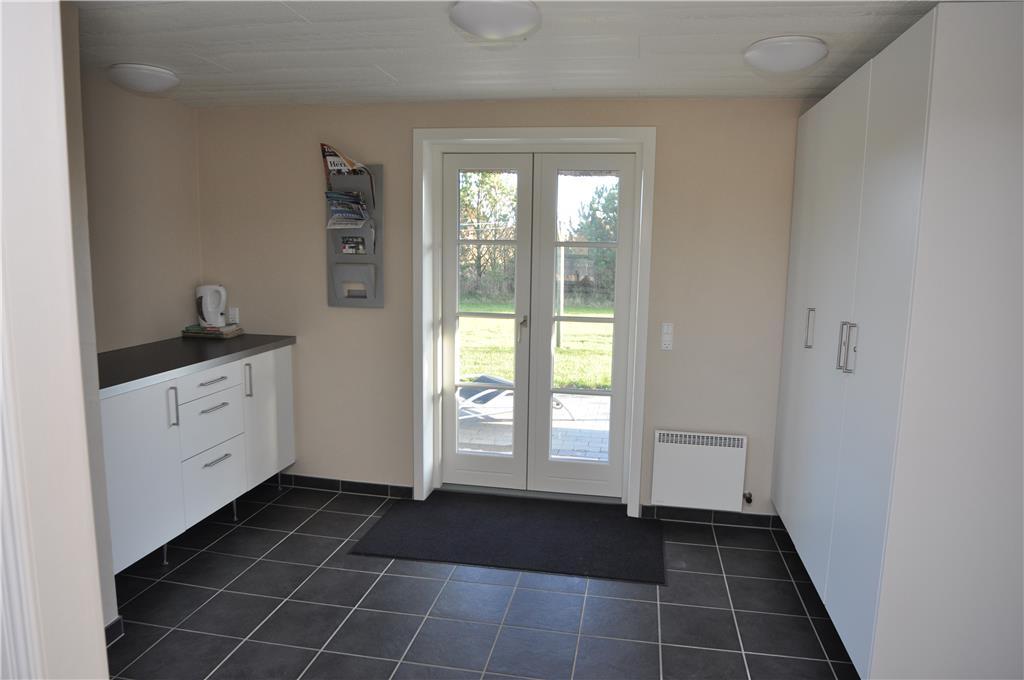 Huset ligger på en stor grund med en dejlig græsplæne og hybenbuske langs hele grunden, på den måde kan I nyde freden og roen godt afskærmet fra naboer. Den store græsplæne ligger også op til sjov og leg for hele familien, så tag fodbolden frem og giv jer i kast med en fodboldkamp om hvilket hold der er bedst med de opsatte mål på grunden. Langs huset løber der flotte store terrasser både mod vest, syd og øst, sådan at I kan følge solen hele dagen, så nyd morgenkaffen og se solnedgangen, tag frokosten på den sydvendte terrasse og tænd op i grillen på den vestvendte terrasse og se solen gå ned i det fjerne.