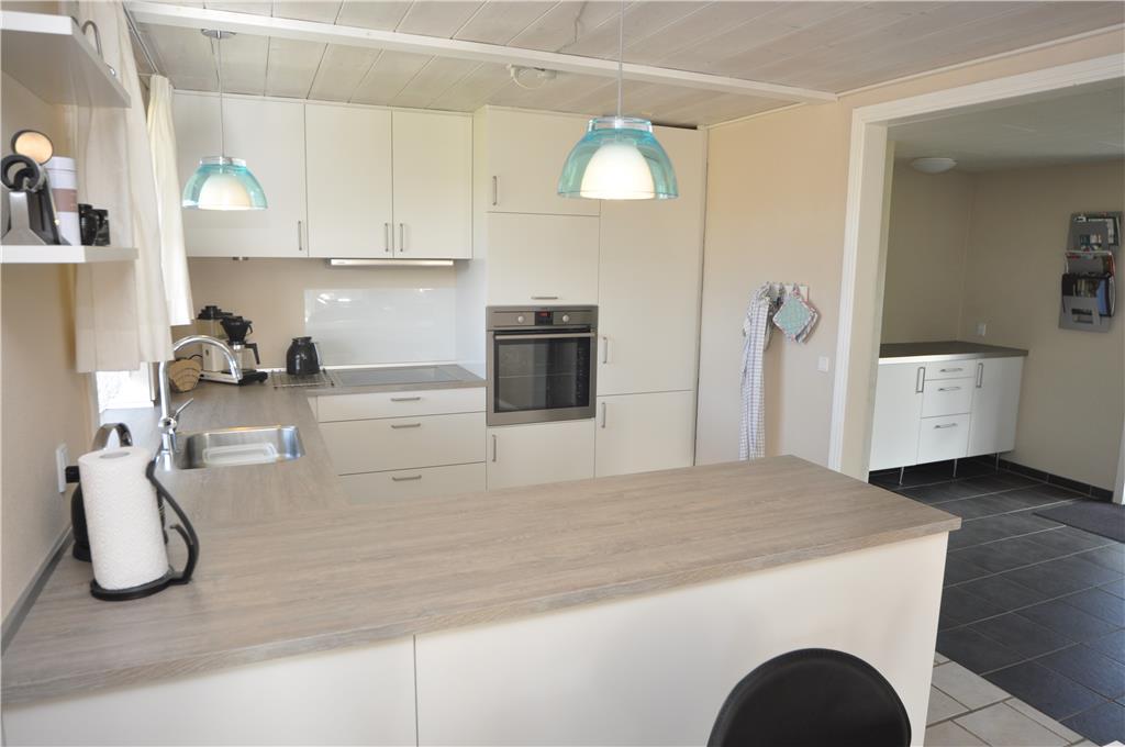Når I træder ind i dette smukke feriehus, bliver I mødt af et skønt lysindfald der lyser rummene op og giver det en dejlig rolig atmosfære. Det store kombinerede køkken og opholdsstue giver jer mulighed for at være sammen på trods af at aftensmaden skal laves, her kan I stadigvæk være med i den samtale der kører rundt om spisebordet. På de kølige sommeraftner kan I tænde op for den hyggelige brændeovn og nyde dens dejlige varme og behagelige knitrende lyd der spreder sig i rummet. Har I en dag brug for alene tid gør husets værelser det muligt for jer, så træk jer tilbage med en bog eller tag et velfortjent hvil på en af de skønne værelser.