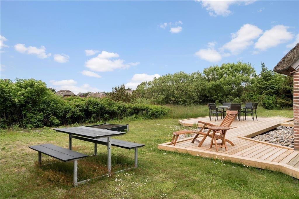 Huset finder I, i det naturskønne feriehusområde Vedersø Klit, her finder i masser af smuk natur og ikke langt fra huset, blot 900 meter, finder I en dejlig badestrand med Blåt Flag ved det skønne Vesterhav, så tag håndklædet under armen og begiv jer mod stranden. Få kilometer fra huset finder I også Husby Klitplantage hvor I kan følge nogle af de mange afmærkede ruter, eller tag en kølig dukkert i den populære badesø. Har I en dag lyst til at se lidt til fuglelivet så smut en tur forbi lavvandede Nissum Fjord som er et vigtigt ynglested for vadefugle og flere steder langs fjorden kan I opleve fredede reservater med et utroligt rigt fugle- og planteliv.
