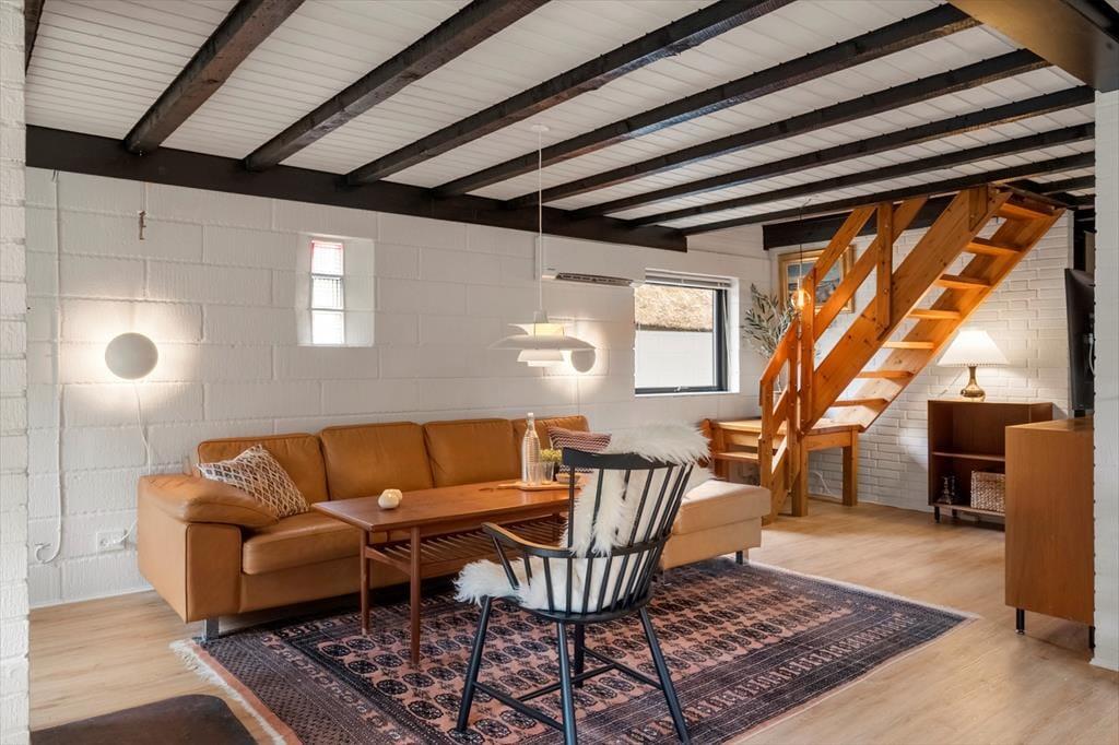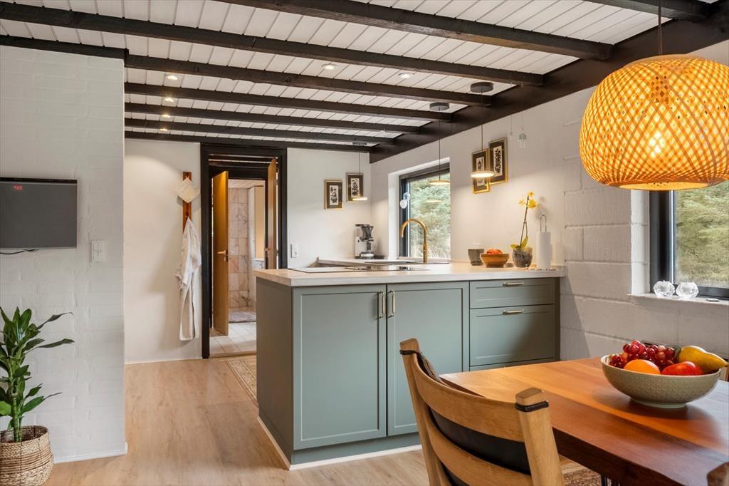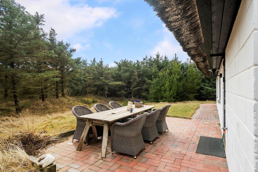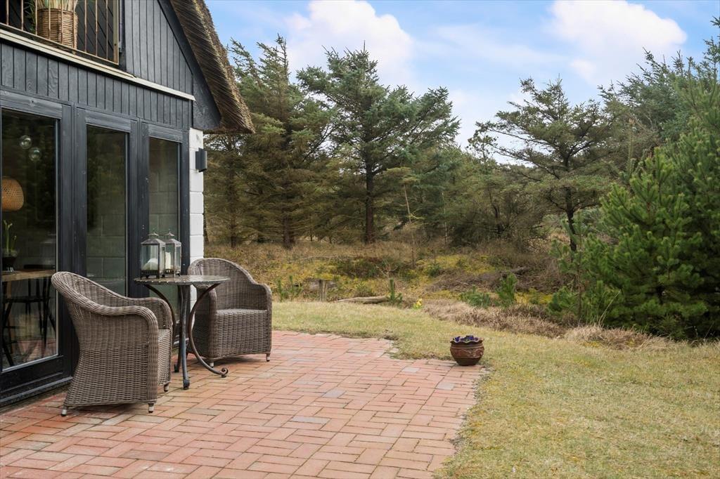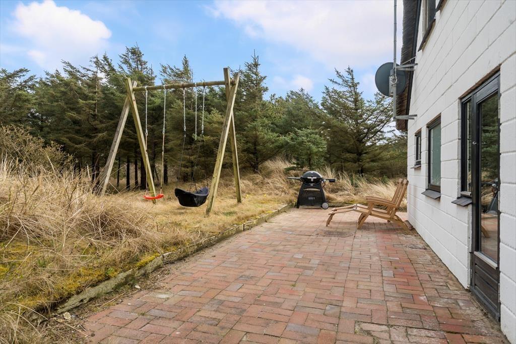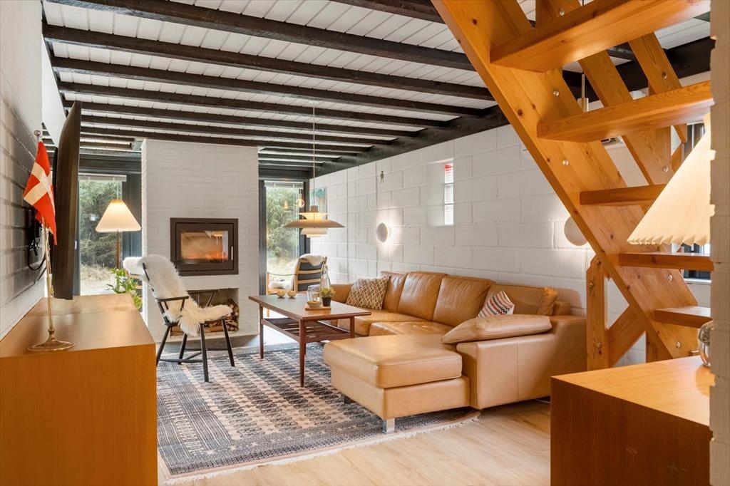 Sommerhus i Vedersø Klit Strand, Vestjylland, med plads til 6 voksne og 2 husdyr. Der er en hyggelig indretning med bl.a. brændeovn, og du finder desuden vaskemaskine, opvaskemaskine og tørretumbler i boligen.