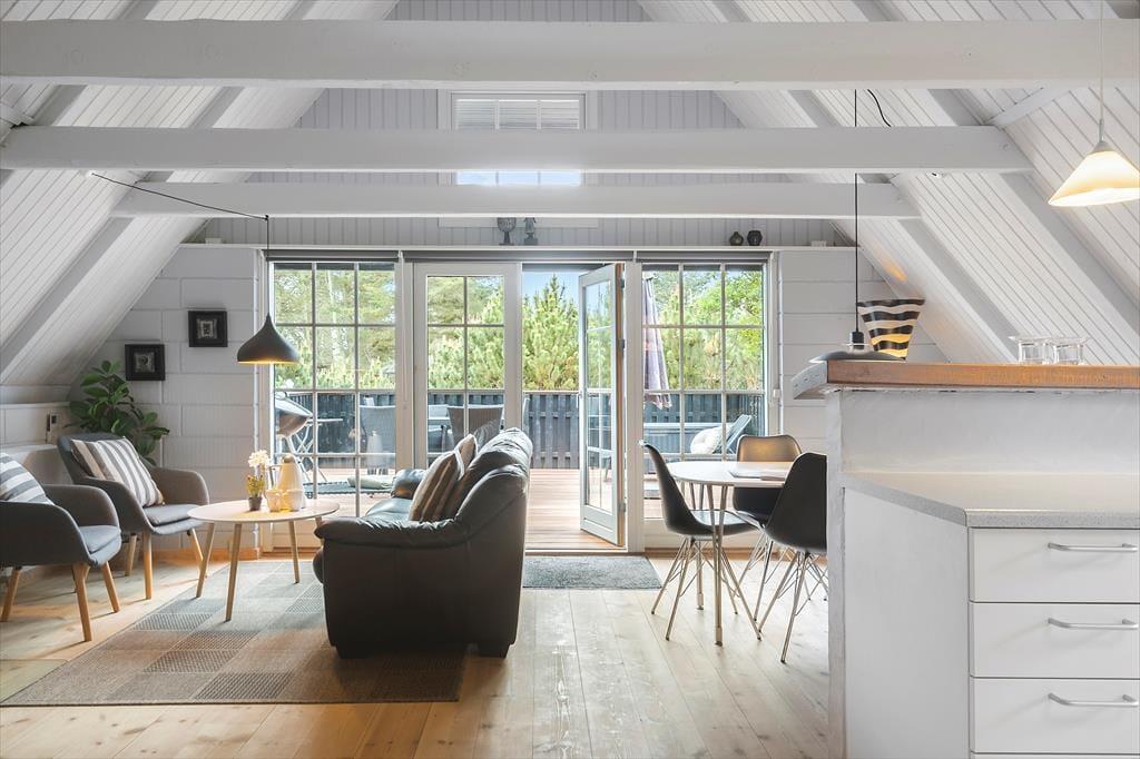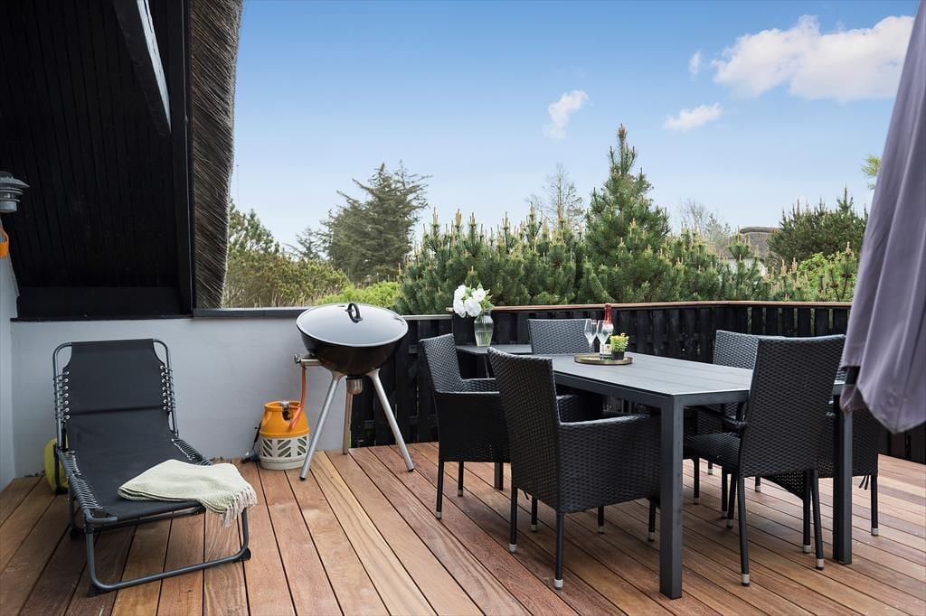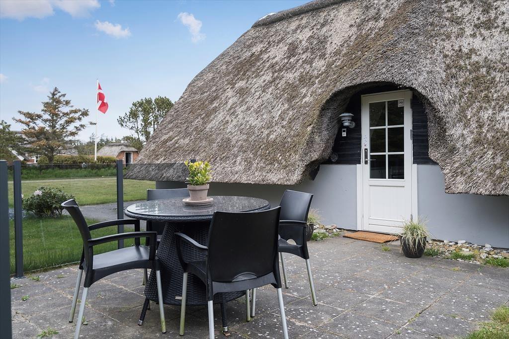 På den store terrasse kan du starte dagen med en kop kaffe under åben himmel, nyde solen i liggestolen eller grille lækker mad til aftensmaden. Huset ligger på en fredet naturgrund, hvor naturens ro og fuglenes sang skaber en helt særlig stemning. Her kan du læne dig tilbage og bare være til – langt væk fra hverdagens støj og tæt på det, der virkelig betyder noget. Med Vesterhavet i nærheden er der også rig mulighed for en frisk dukkert, en tur i klitterne eller bare en stille gåtur i det rå og smukke kystlandskab.