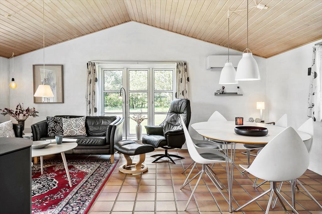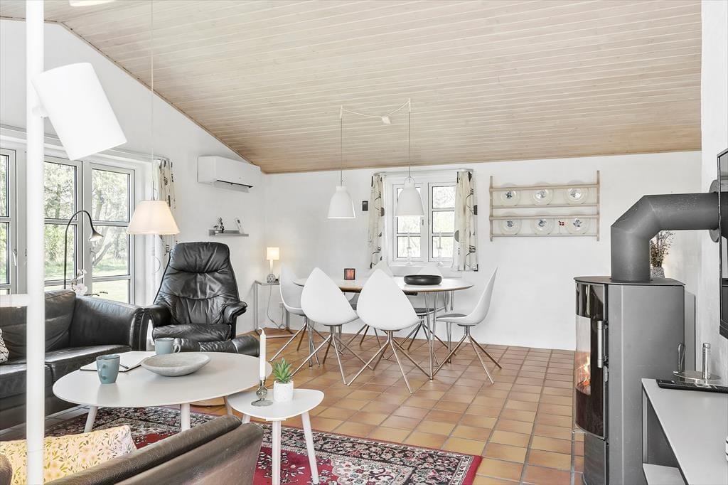 Drømmer I om ægte sommerhusstemning, ro og nærvær – så er dette feriehus det perfekte sted at lande. Her er der god plads til hele familien – også jeres hund – og en varm, afslappet atmosfære, der får jer helt ned i gear fra første øjeblik. Det lyse køkken og stuen hænger naturligt sammen, så I kan lave mad, spille spil og slappe af, uden at miste hinanden af syne. Når aftenen falder på, kan I lade brændeovnen sprede varme og hyggelig knitren, eller synke ned i spaens boblende vand og slutte dagen af i den lune sauna. Her handler det om at nyde – uden hastværk.